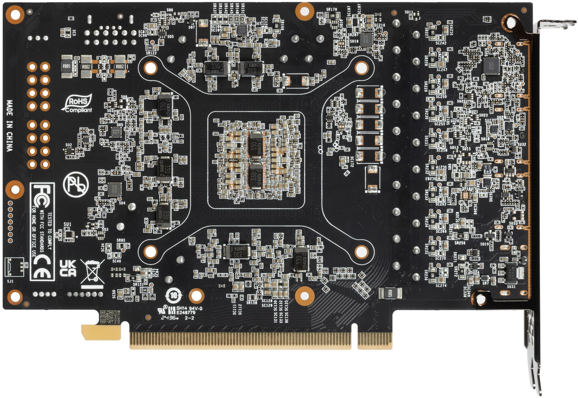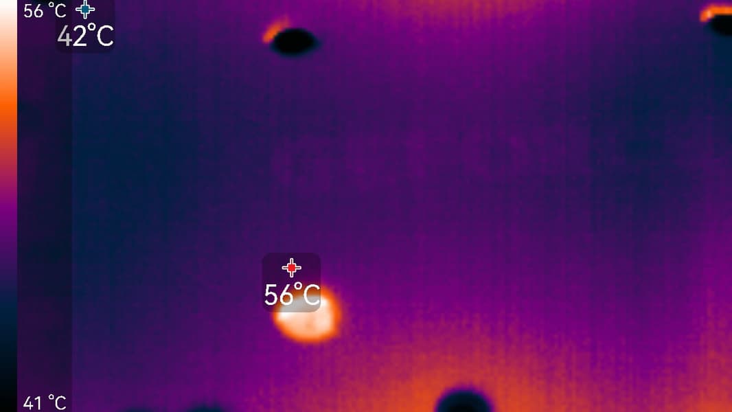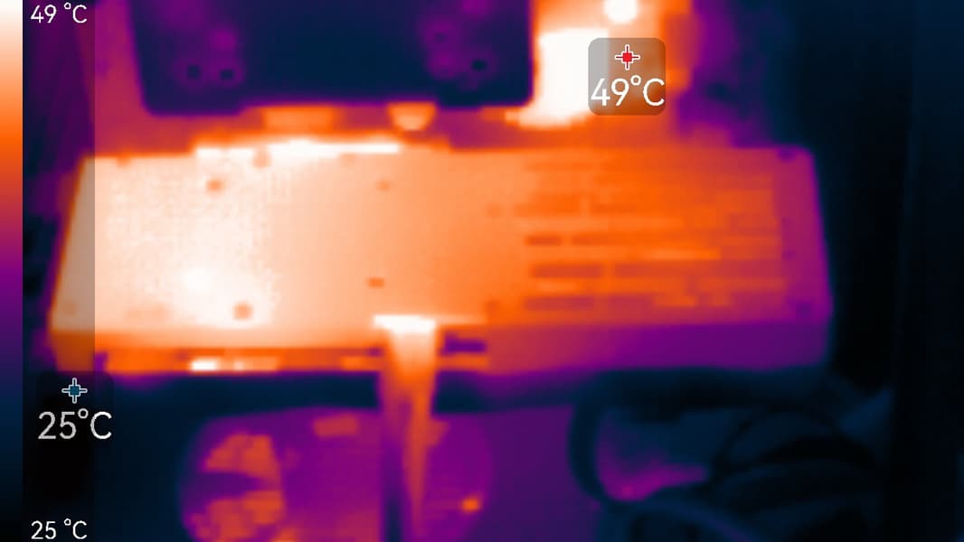 Максимальный нагрев наблюдался в центральной части PCB и у разъемов PCIe и питания.