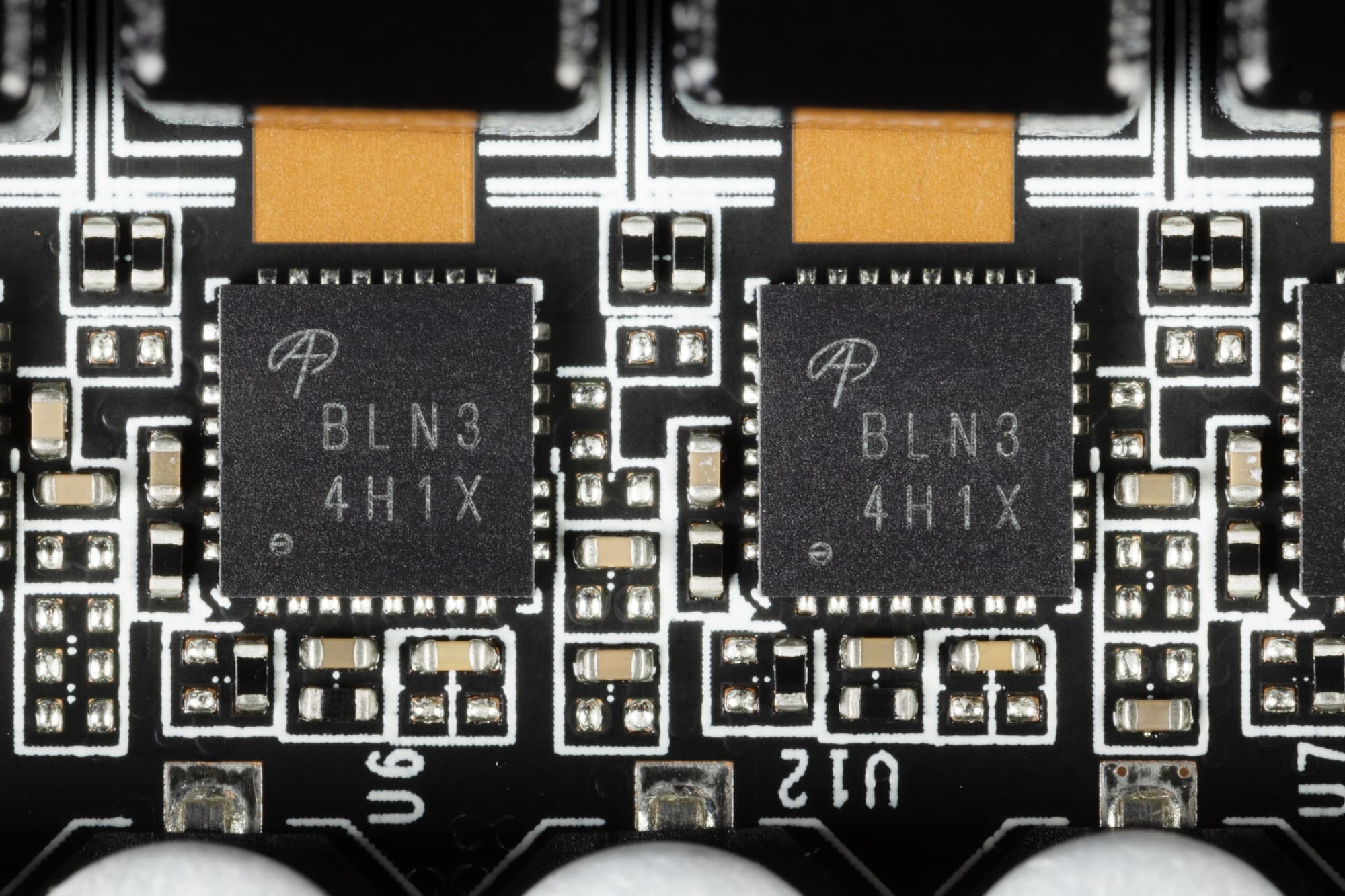В преобразователе питания используются транзисторные сборки DrMOS — в данном случае AOZ5311NQI (Alpha&Omega Semi), каждая из которых рассчитана максимально на 50 А.