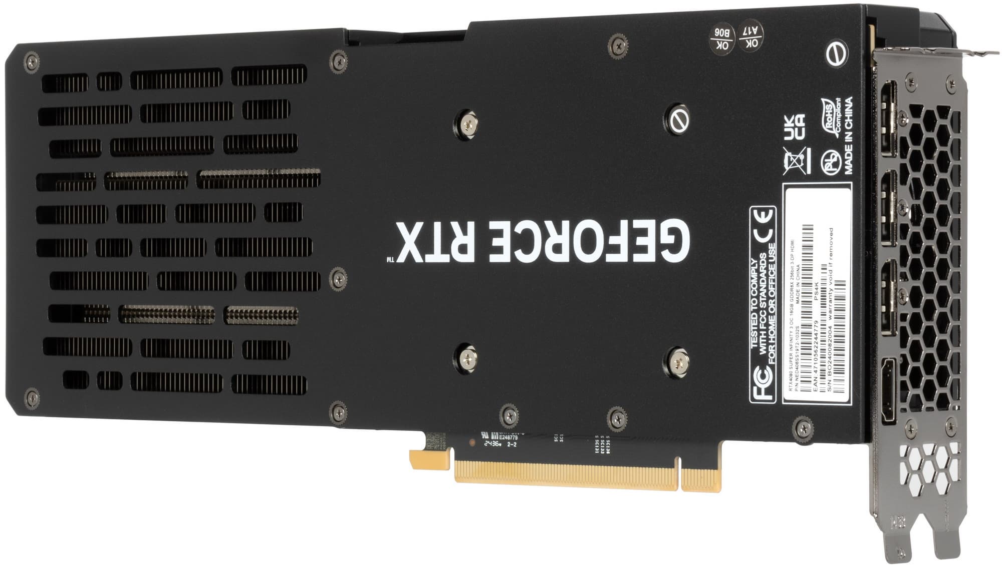 GeForce RTX 4080 Super не обладает поддержкой мультиграфической конфигурации, то есть технологии SLI, и у карты нет специального разъема на верхнем торце.