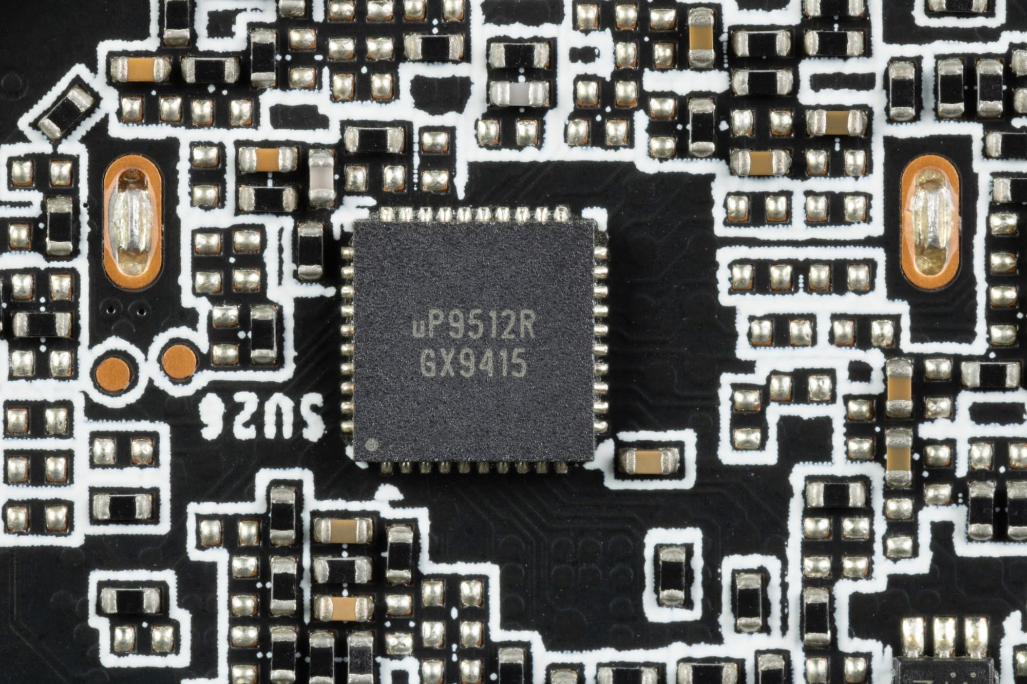12 фазами питания ядра управляет ШИМ-контроллер uP9512R (uPI Semiconductor).