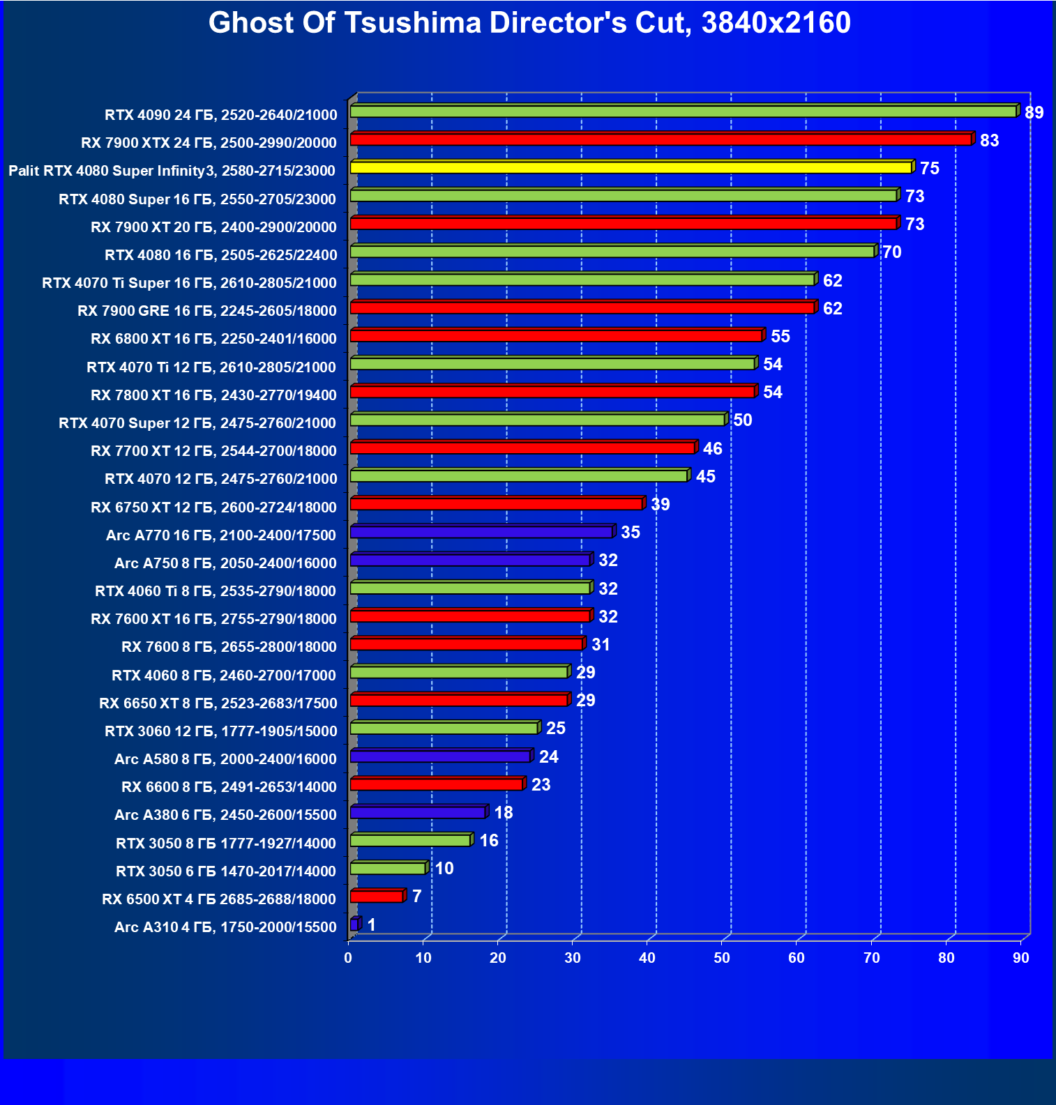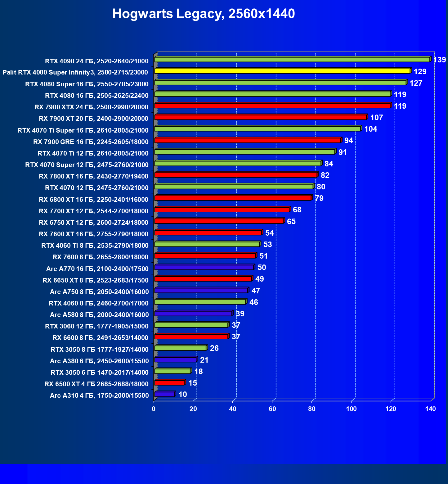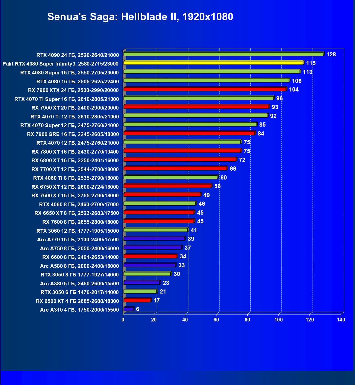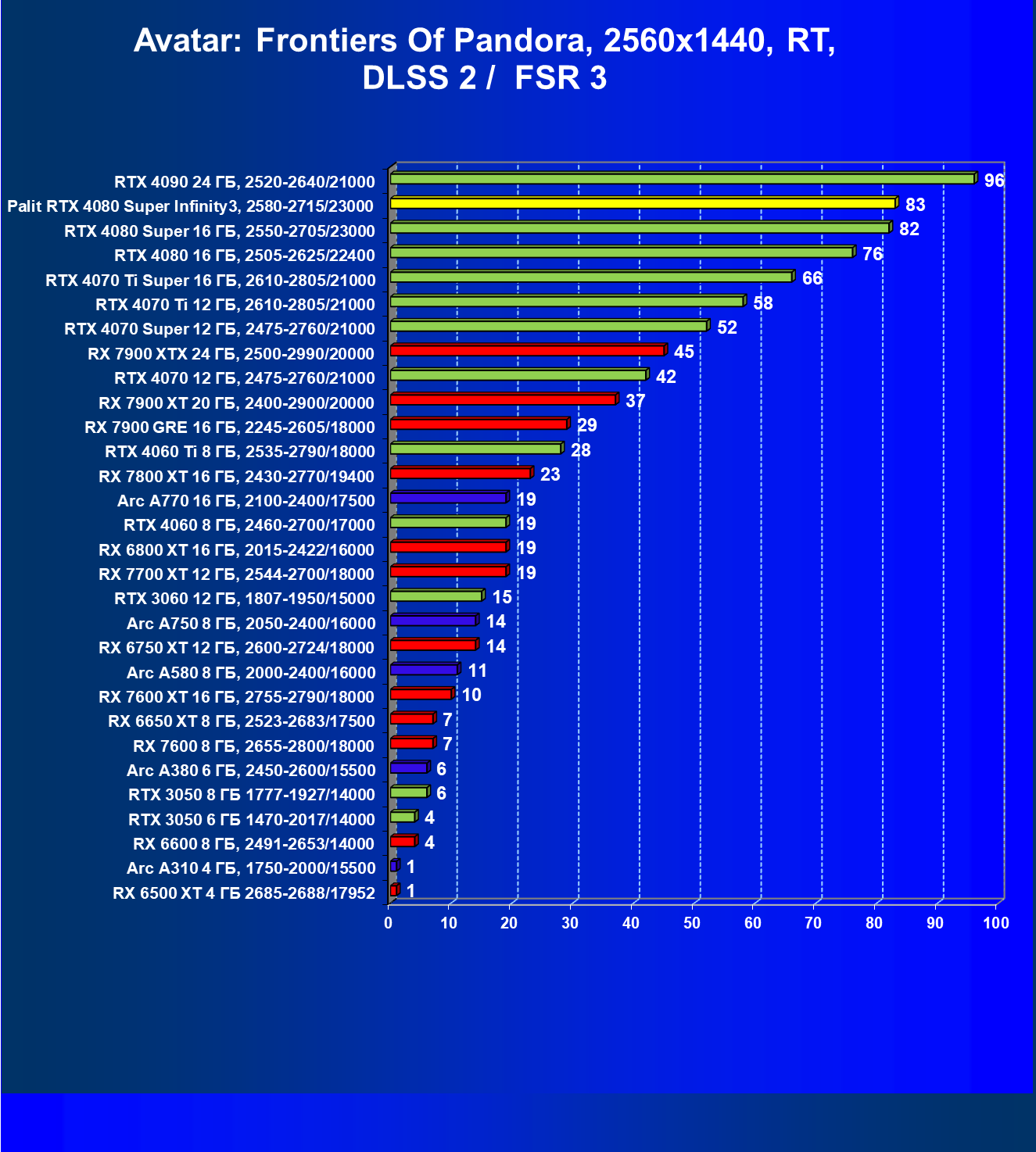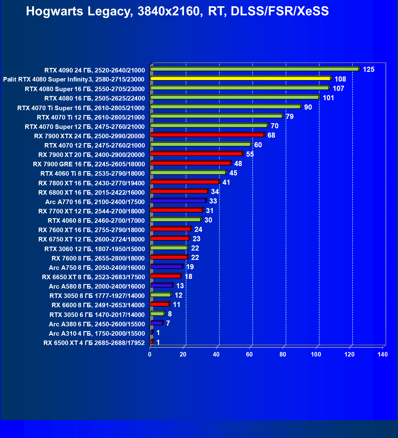 | 03 | Palit RTX 4080 Super Infinity3, 2580—2715/23000 | 628 | 7290 | 116 000 |