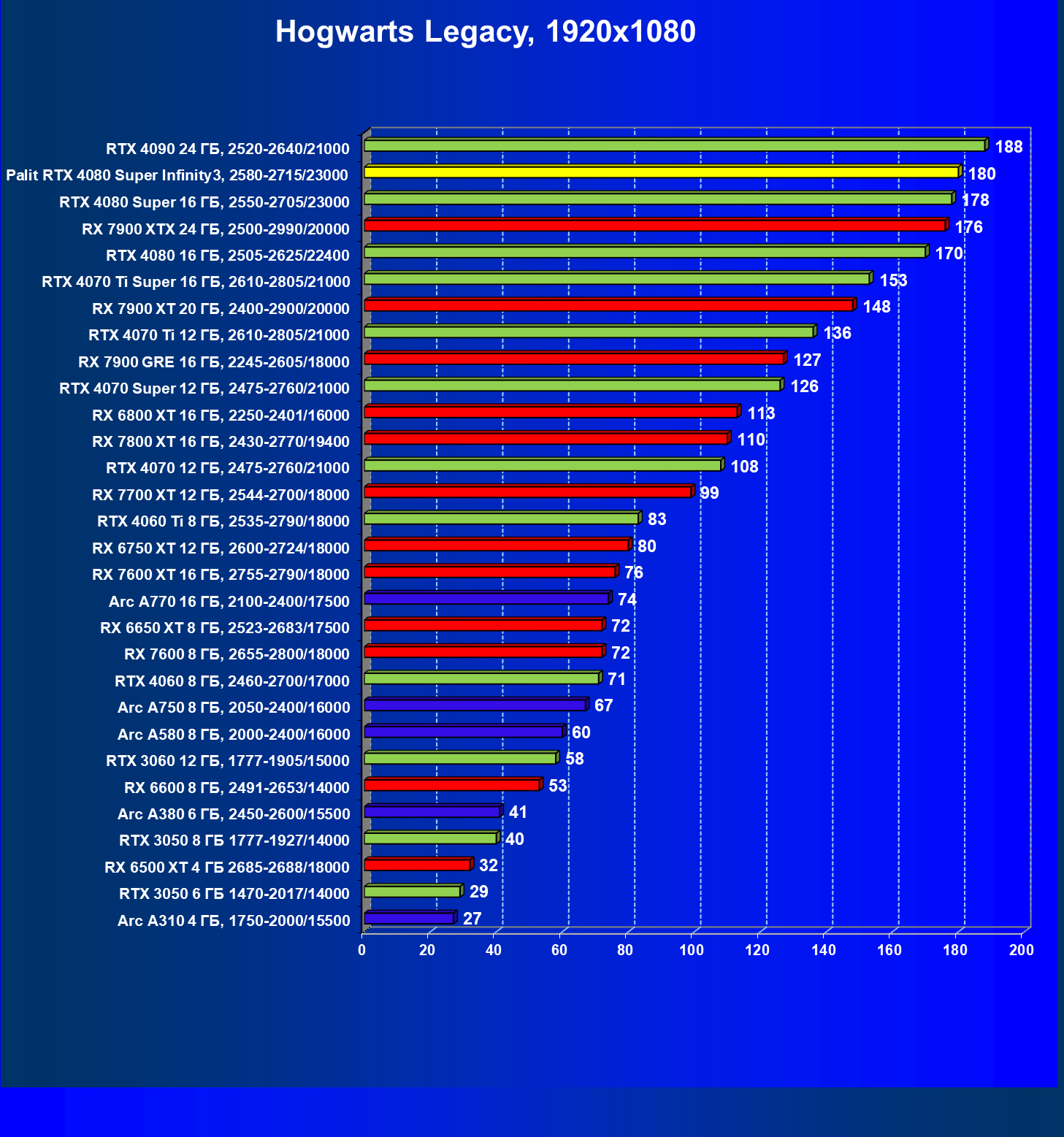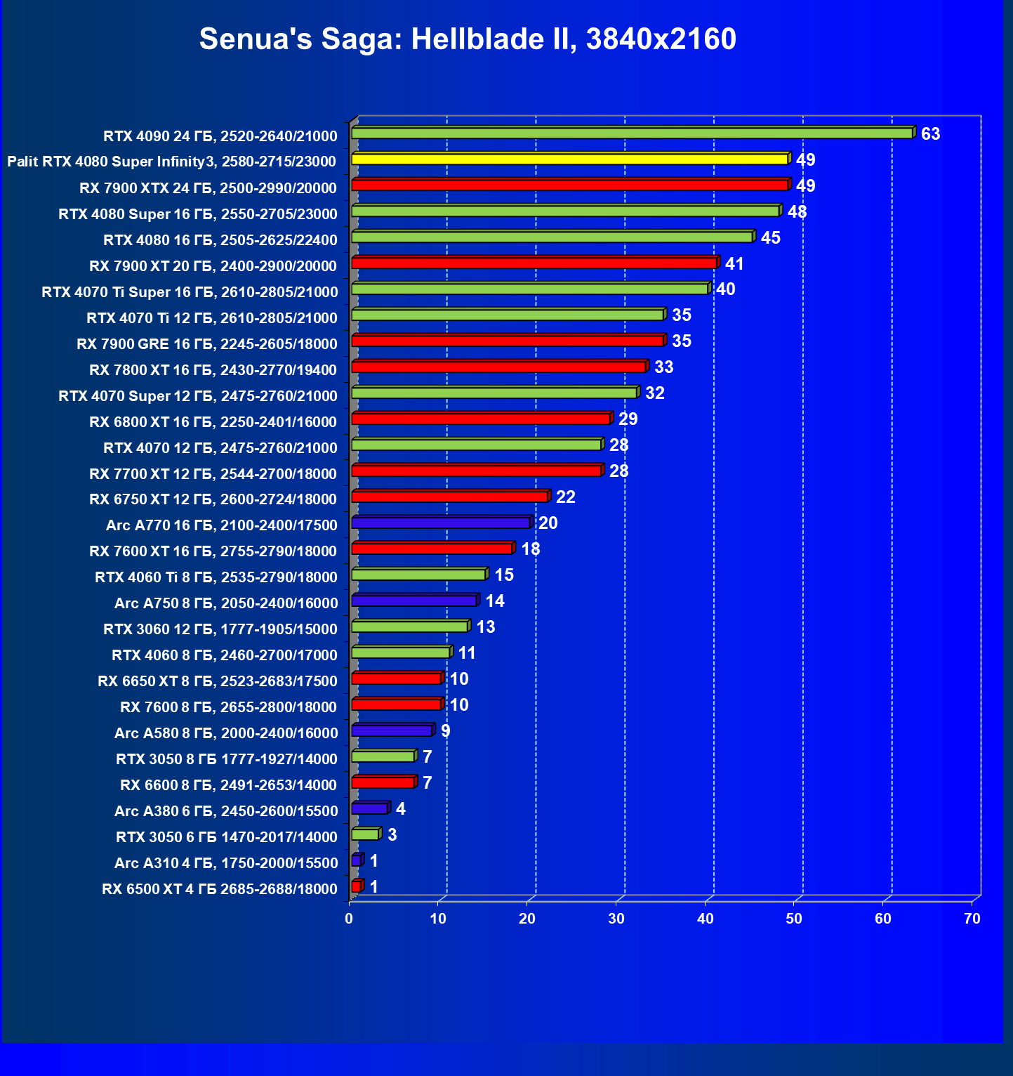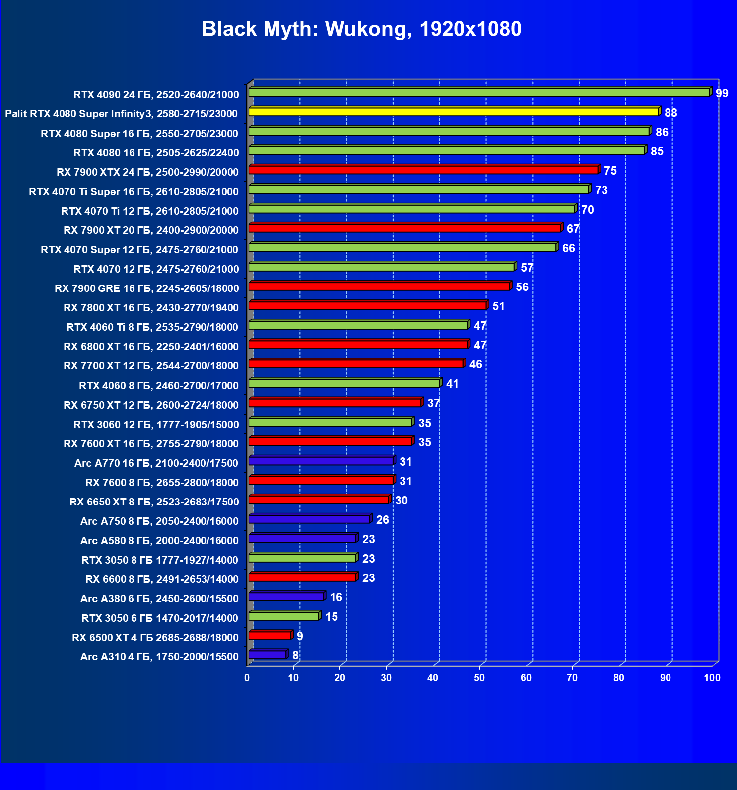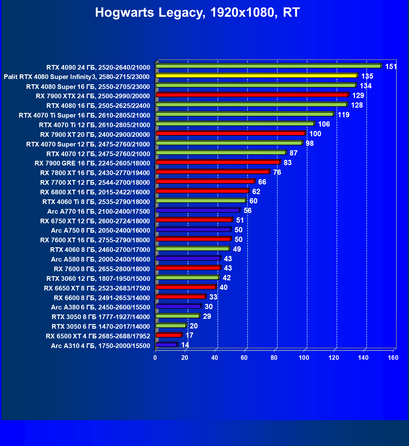 | 03 | Palit RTX 4080 Super Infinity3, 2580—2715/23000 | 628 | 7290 | 116 000 |