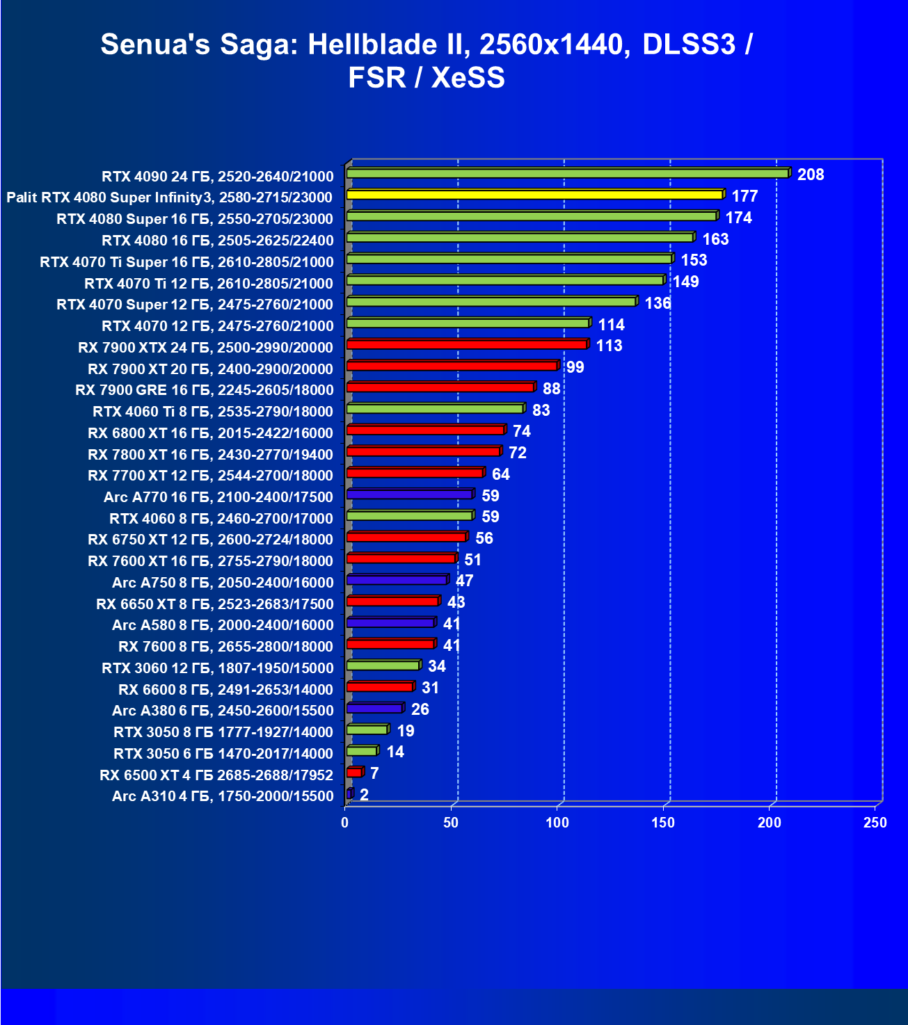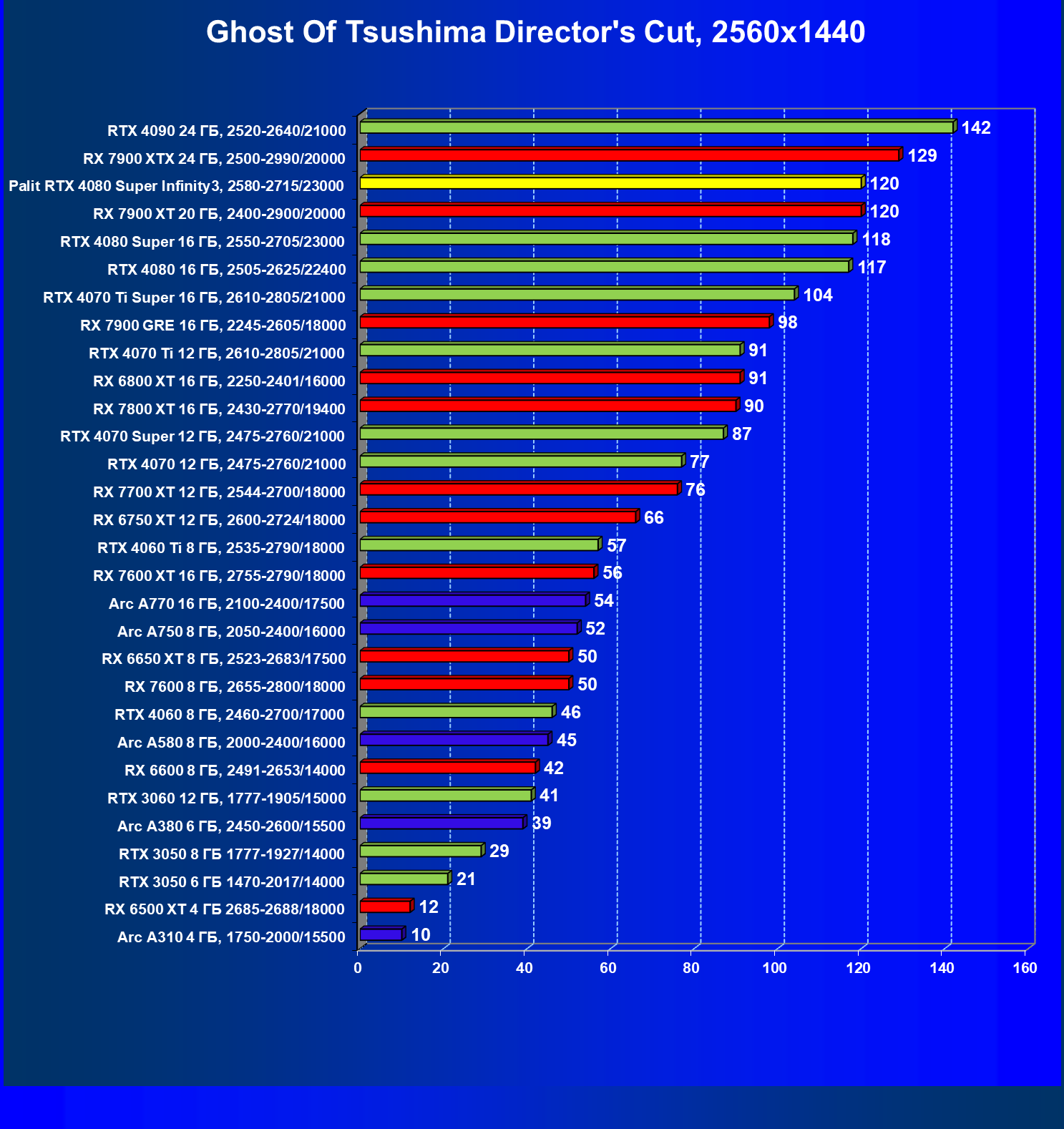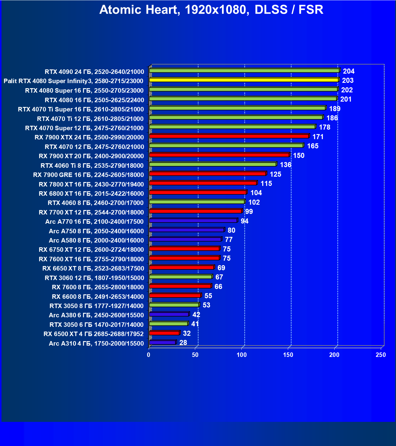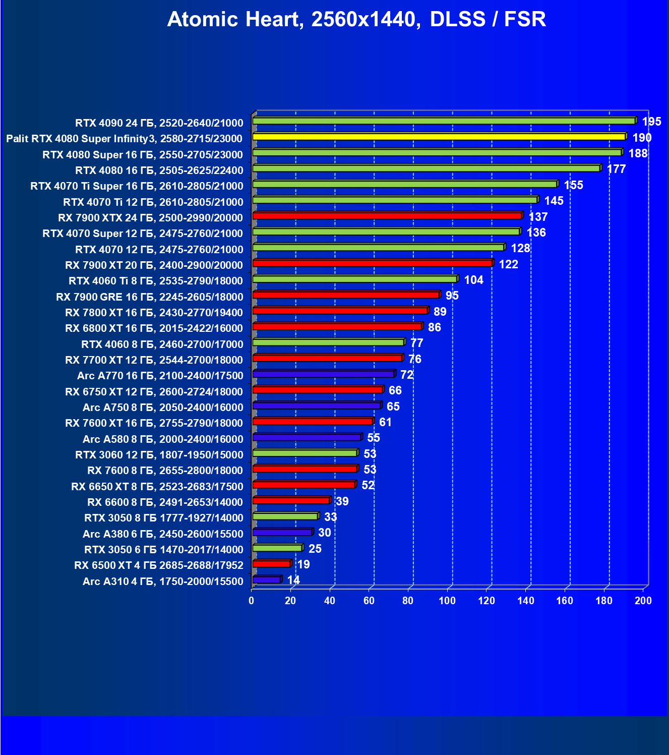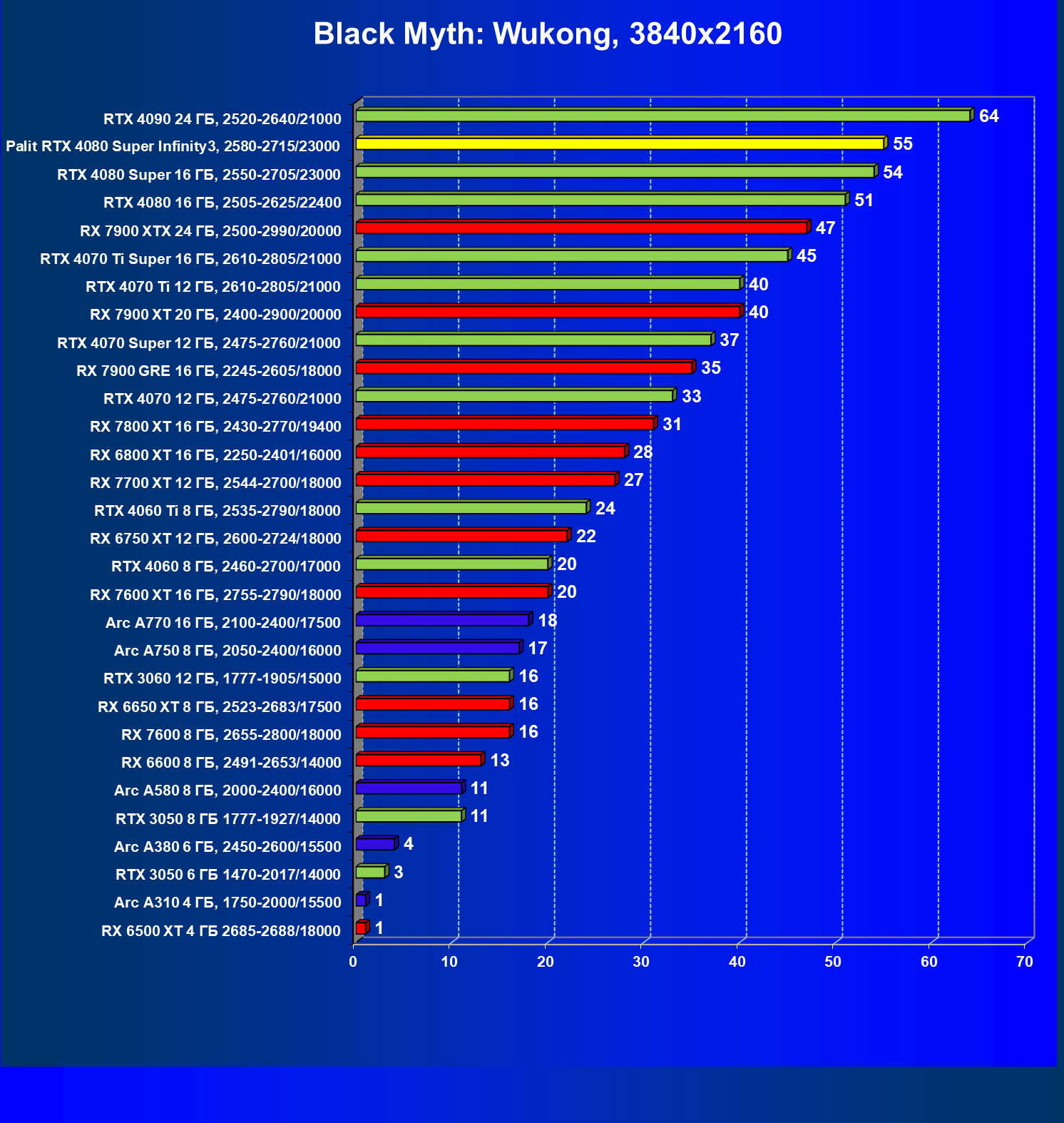| 03 | Palit RTX 4080 Super Infinity3, 2580—2715/23000 | 628 | 7290 | 116 000 |
