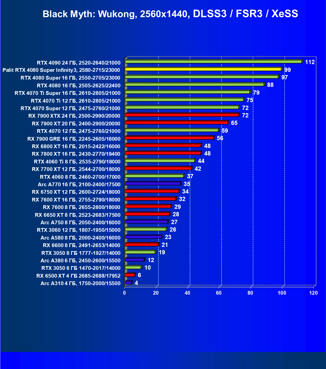 - Вариант рейтинга iXBT.com с включением RT/DLSS/FSR/XeSS