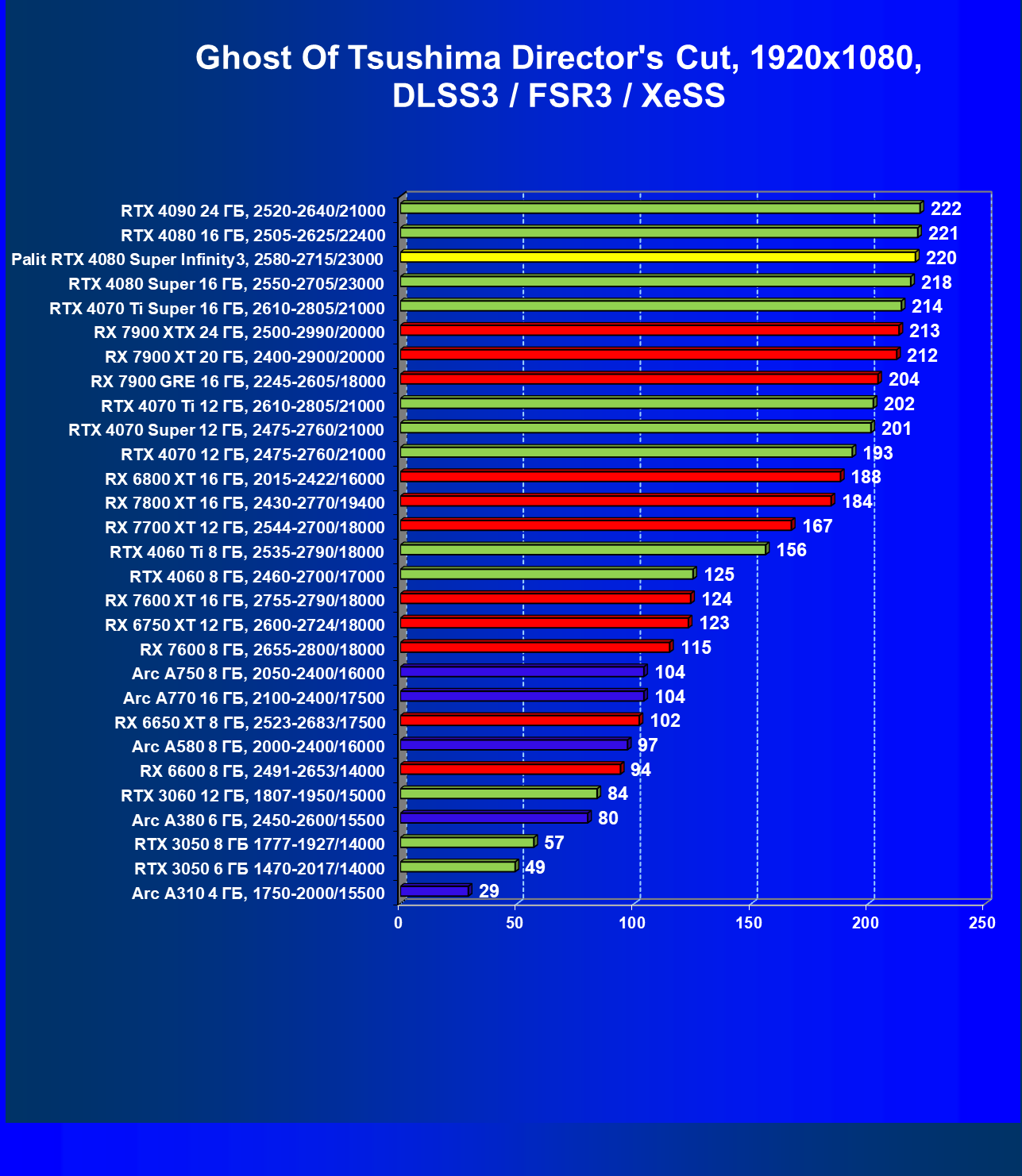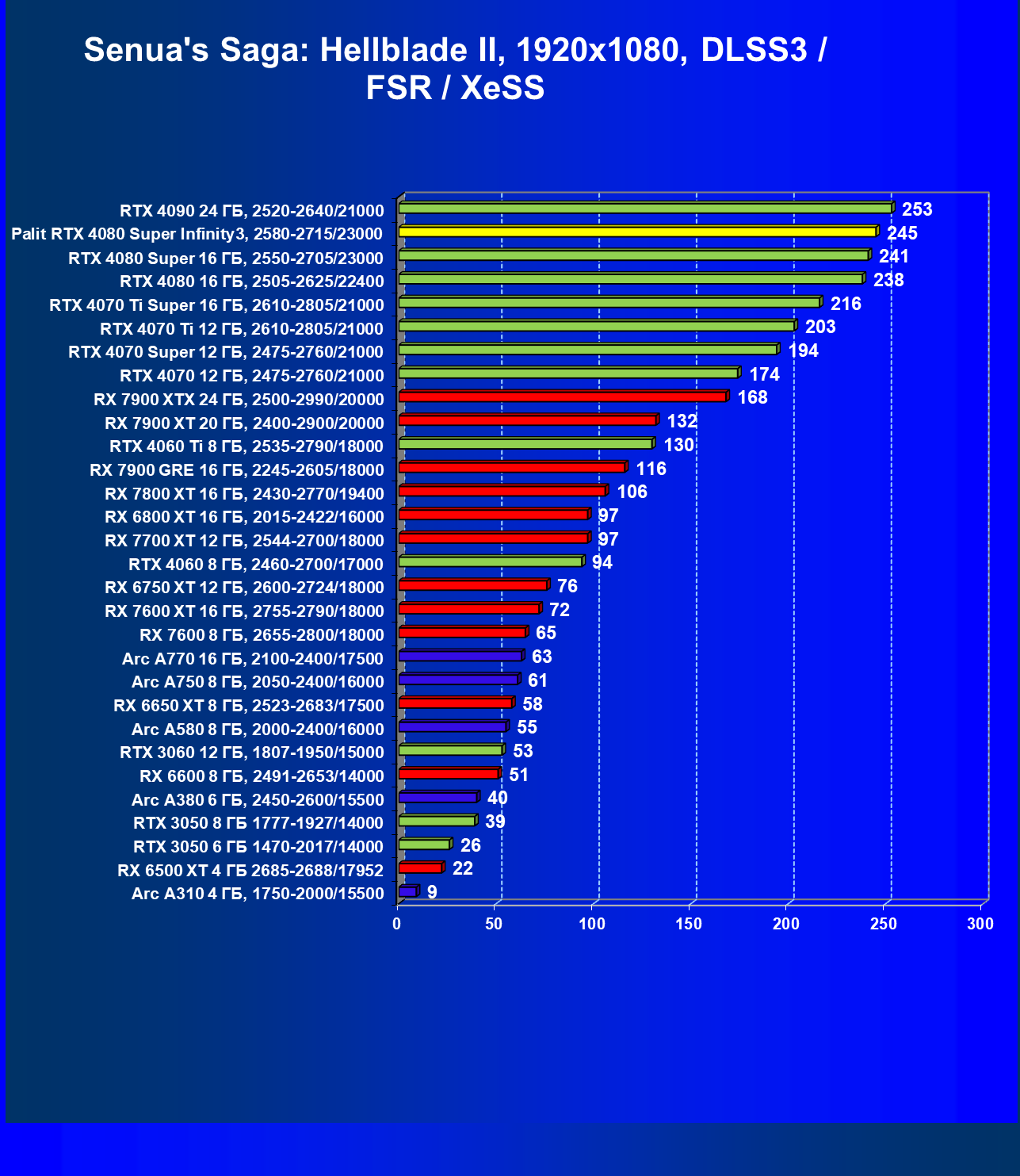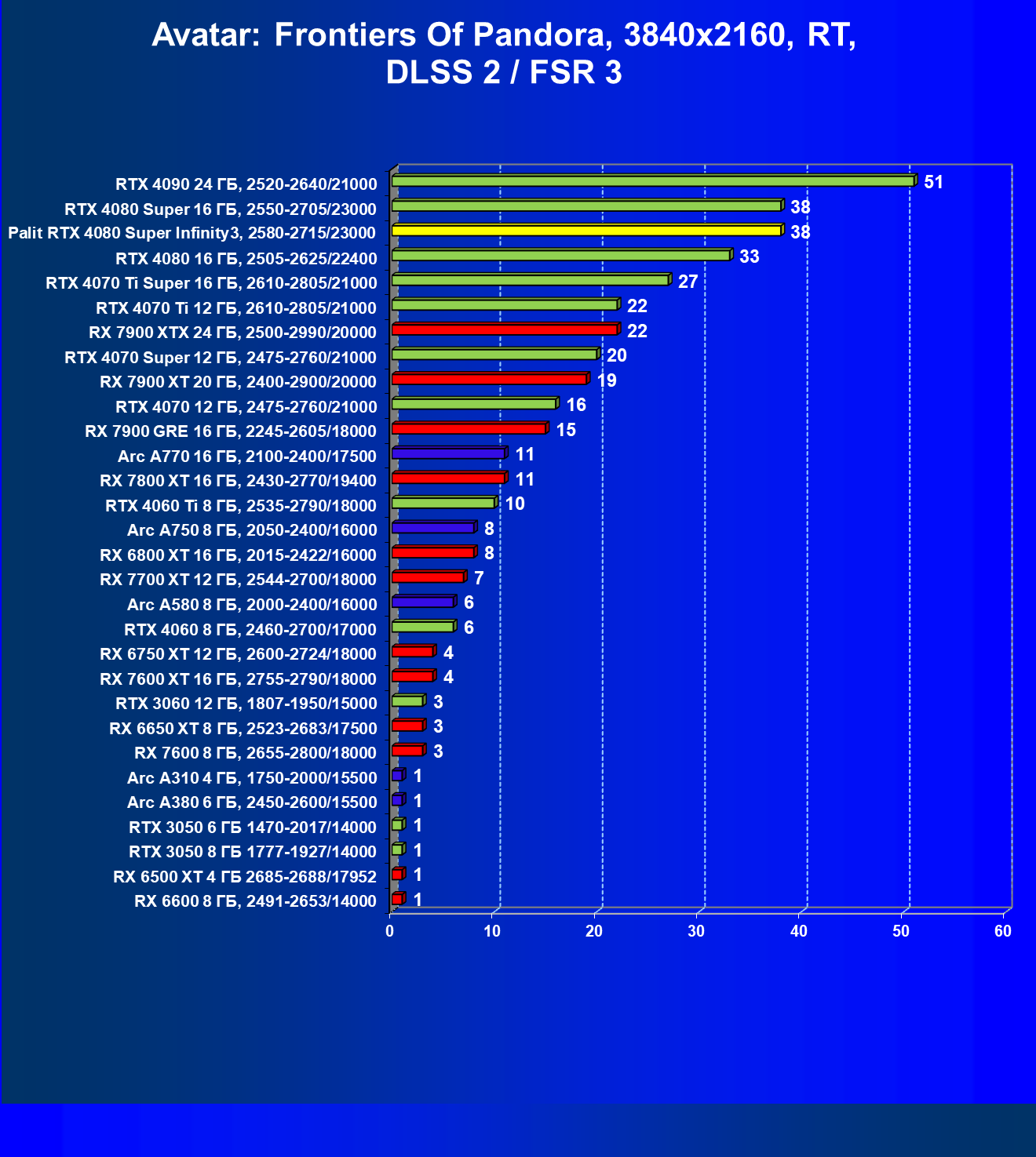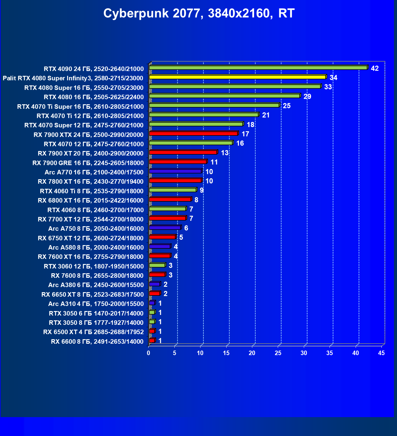 | 17 | Palit RTX 4080 Super Infinity3, 2580—2715/23000 | 372 | 4317 | 116 000 |