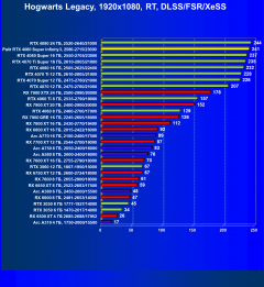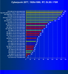 Результаты тестов со включенной аппаратной трассировкой лучей и/или DLSS/FSR/XeSS в разрешениях 1920×1080, 2560×1440 и 3840×2160