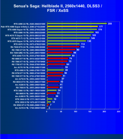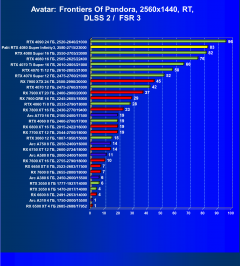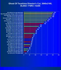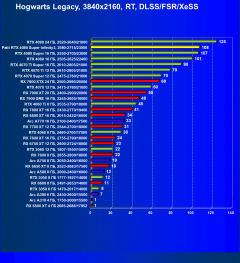 Снова как только мы переходим к играм с RT и DLSS/FSR/XeSS, видеокарты Nvidia становятся лидерами.