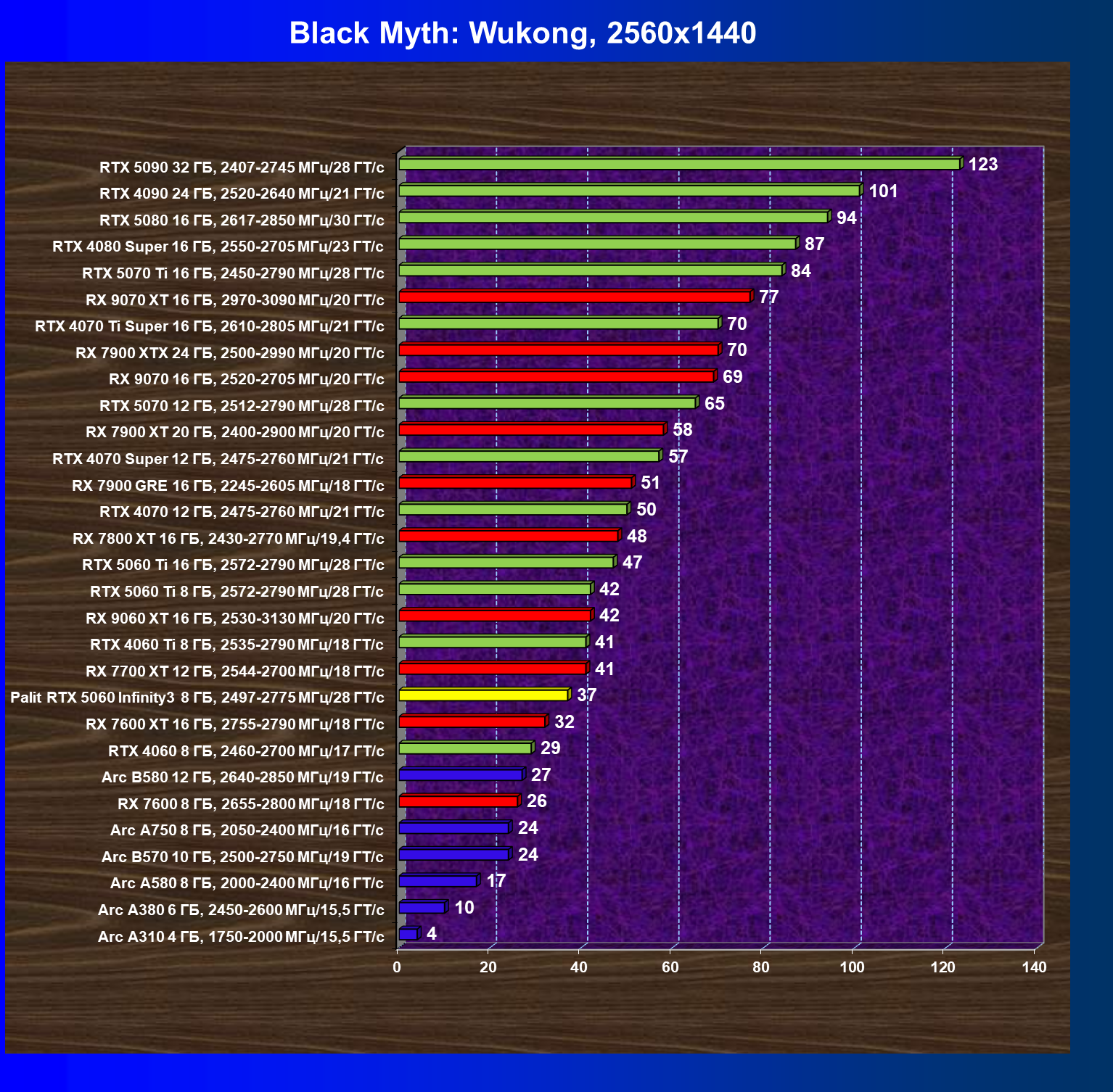 В данном рейтинге учитываются только результаты в играх без включения RT и DLSS, в целом в классических играх RTX 5060 в целом, и карта Palit в частности, смотрится очень хорошо!