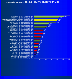 Результаты тестов со включенной аппаратной трассировкой лучей и/или DLSS/FSR/XeSS в разрешениях 1920×1080, 2560×1440 и 3840×2160