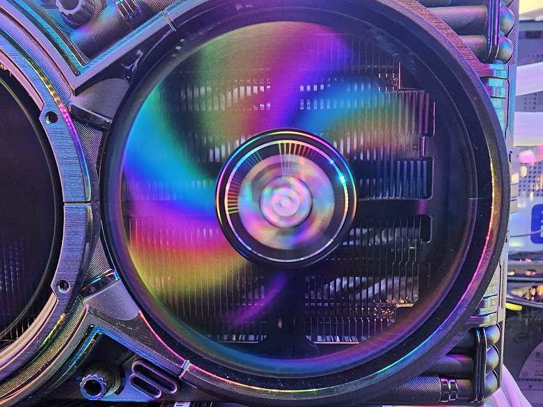 Мы видим кулер со сквозным продувом хвостовой части радиатора. Основой СО является многосекционный пластинчатый никелированный радиатор с тепловыми трубками, распределяющими тепло по ребрам радиатора.