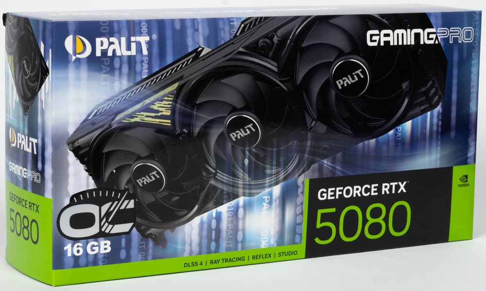 Palit GeForce RTX 5080 GamingPro OC (16 ГБ) — самый бюджетный вариант (как бы смешно это ни звучало) флагманского ускорителя последнего поколения, второго после GeForce RTX 5090 в нынешней табели о рангах у Nvidia.