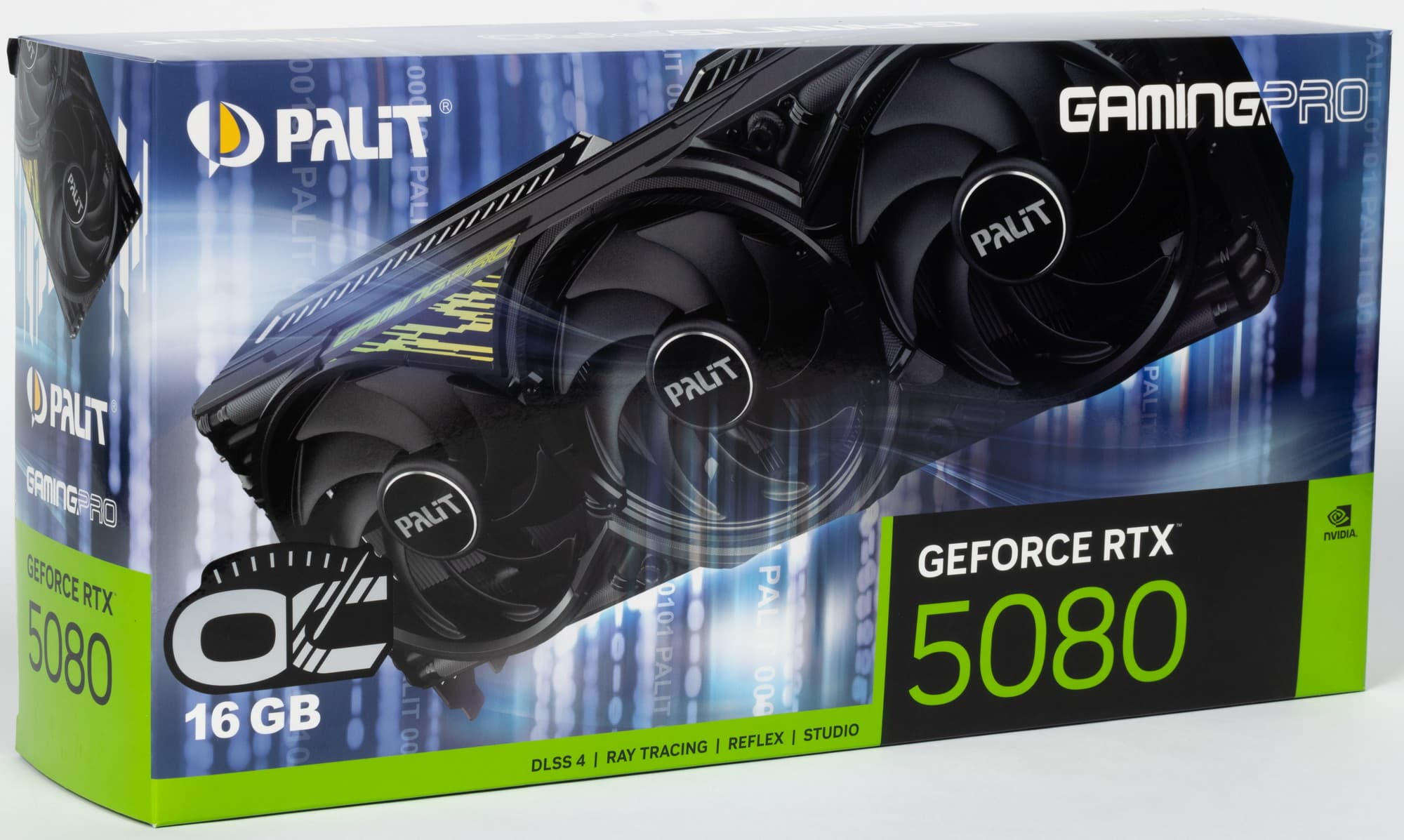 Однако к этим проблемам локального российского характера добавляется глобальная проблема нехватки графических ядер GB203 и GB202, особенно последних. Как следствие, GeForce RTX 5090 распространяются по всему миру крайне малыми партиями, появляются в продаже редко, на Западе их моментально скупают перекупщики, а потом эти карты с накруткой в 3-4 раза перекочевывают на маркетплейсы (eBay, Amazon и др.). Да и GeForce RTX 5080 выпускается не так много. В общем, ситуацию не сравнить с выходом GeForce RTX 4090, GeForce RTX 4080 и пр. Тем не менее, карты на базе GeForce RTX 5080 в продаже в России имеются, и самыми доступными на момент подготовки нашего обзора были решения Palit. В базовом материале по GeForce RTX 5080 мы исследовали карту флагманской серии Palit GameRock, а сегодня рассмотрим представителя более скромной серии GamingPro, основанного на том же GeForce RTX 5080.