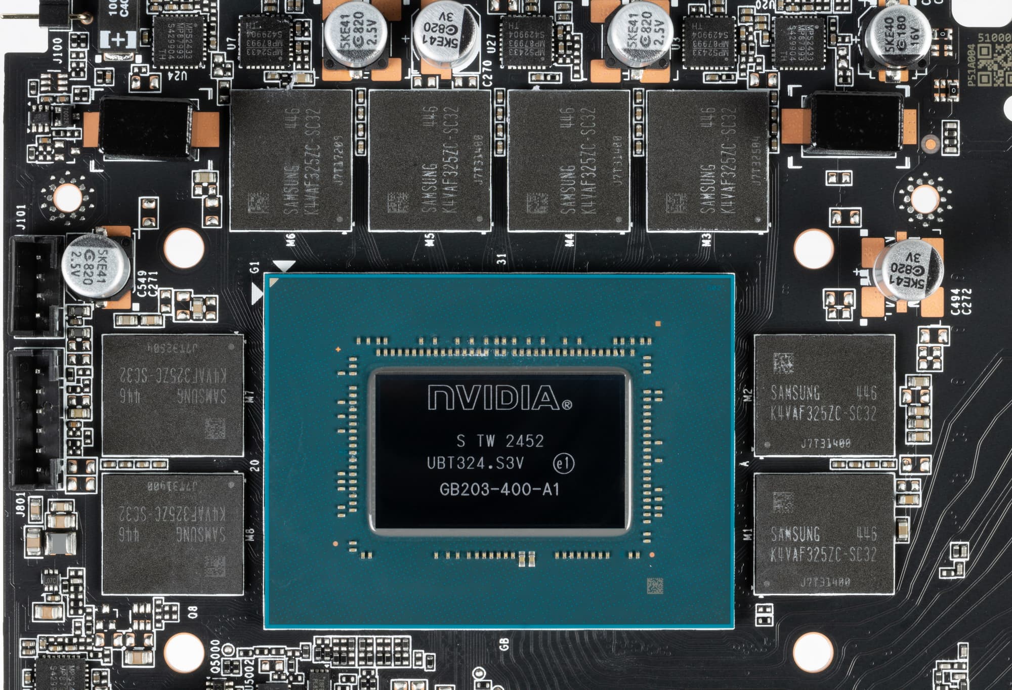 Ядро произведено на 52-й неделе 2024 года (кристалл выполнен по техпроцессу TSMC 4N — по разным оценкам, это 5 нм). Маркировка — GB203-400, а -400 обычно означает полнофункциональный чип (все блоки активны).