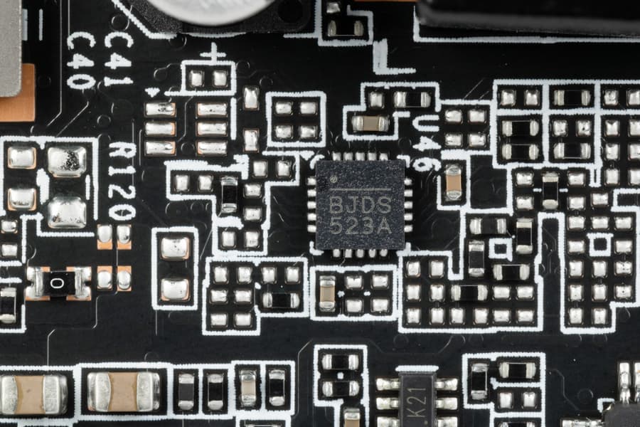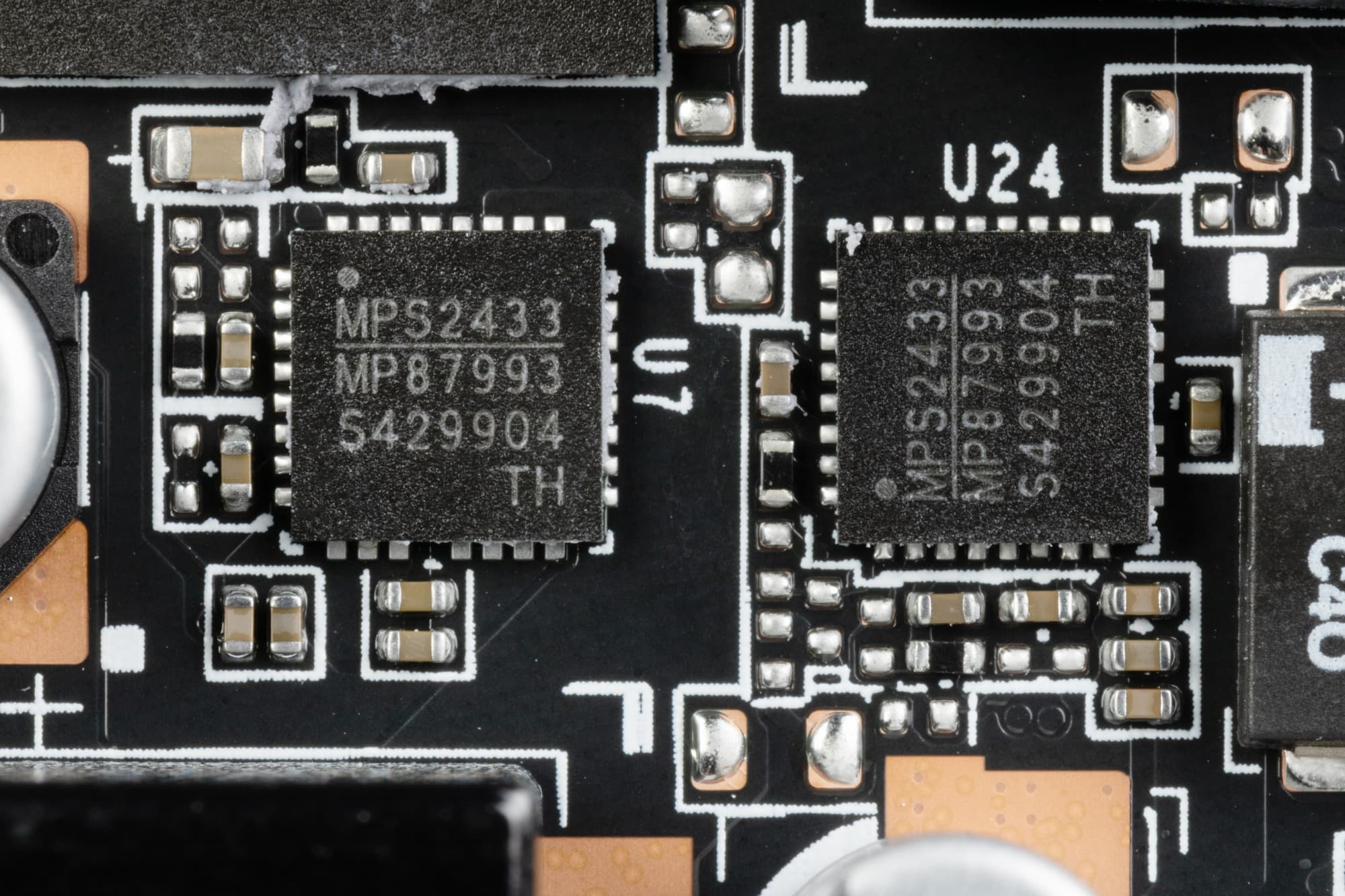 В преобразователе питания ядра и микросхем памяти используются транзисторные сборки DrMOS — MP87993 той же компании MPS, рассчитанные на 90 А.
