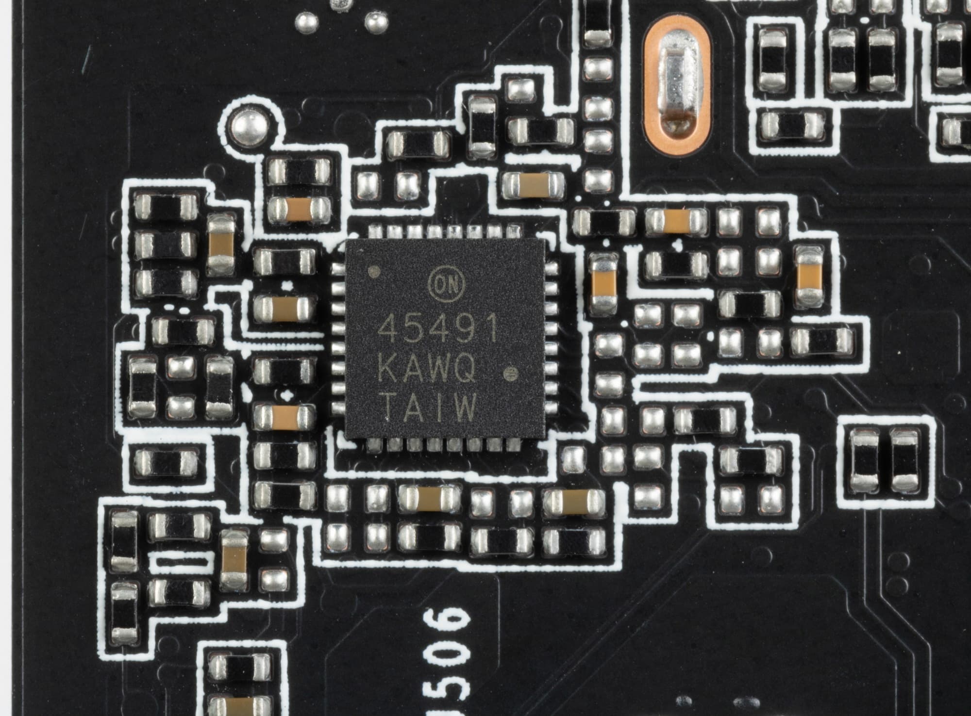 На оборотной стороны PCB имеется контроллер для мониторинга (отслеживания напряжений и температур) On Semi.