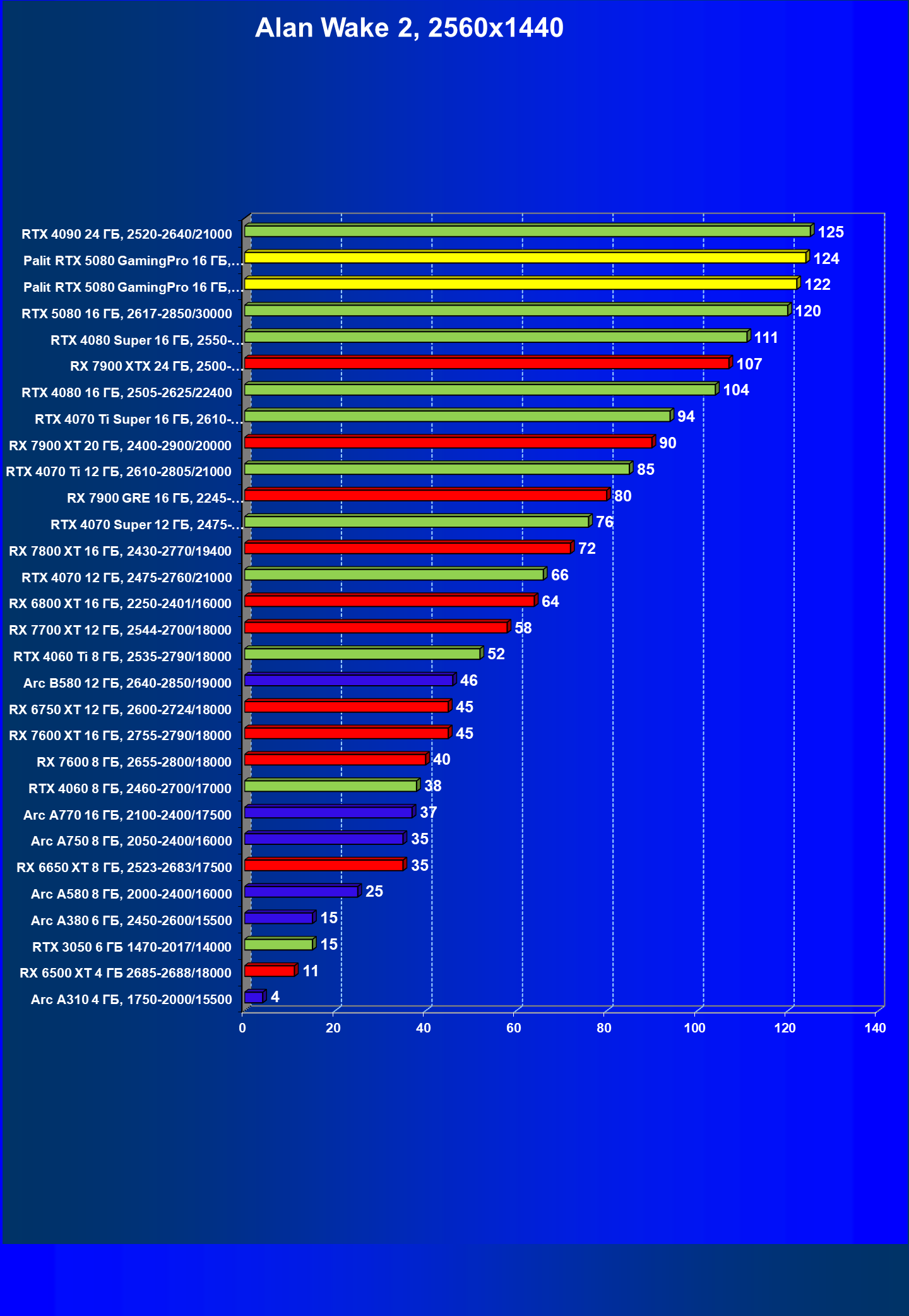 | 05 | RTX 4080 Super 16 ГБ, 2550—2705/23000 | 4584 | 364 | 126 000 |
