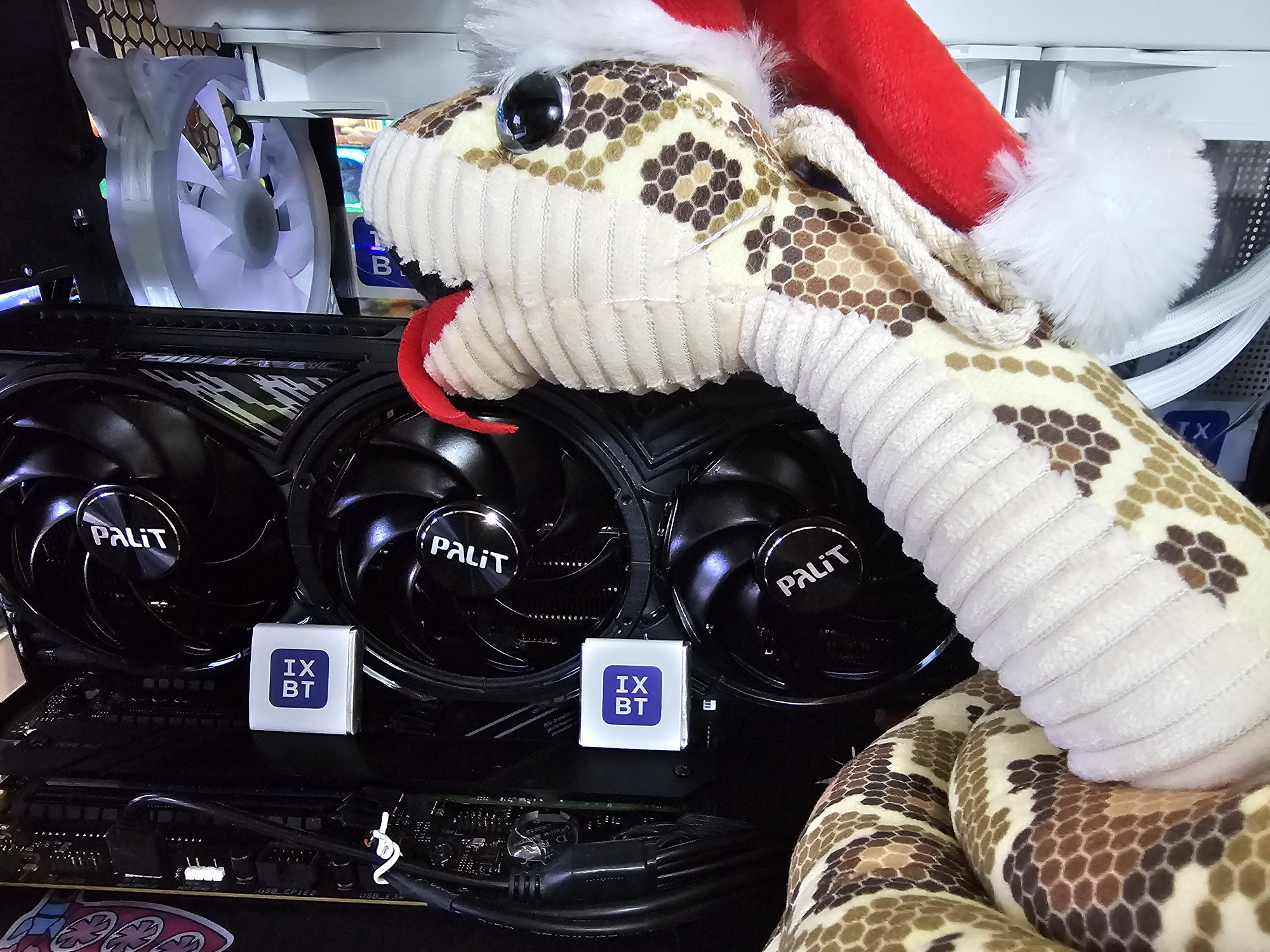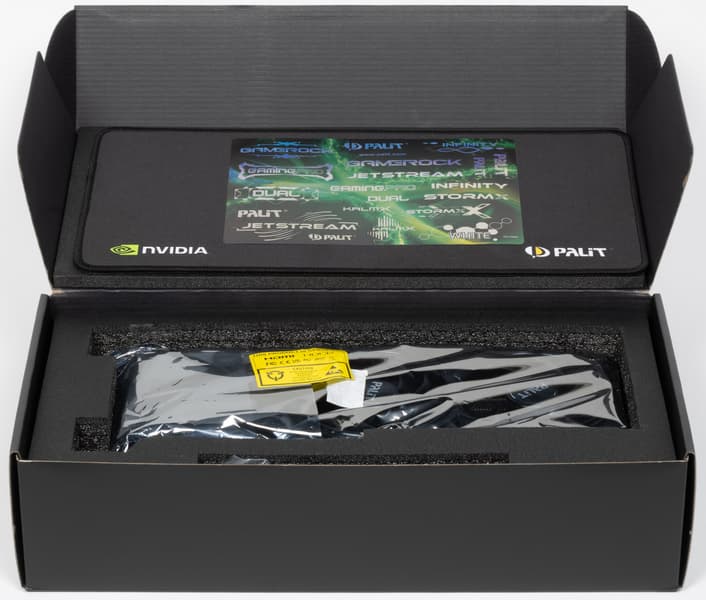 Наконец, следует отметить комплект поставки карты Palit. Здесь есть бонусный коврик для мыши, однако отсутствует копеечный кабель синхронизации подсветки с материнской платой.