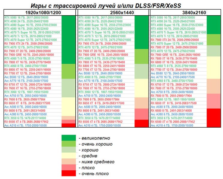 - Вариант рейтинга iXBT.com с включением RT/DLSS/FSR/XeSS
