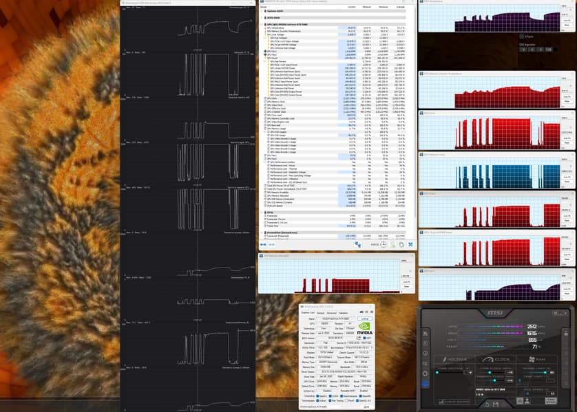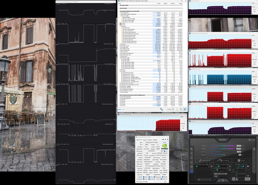 Учитывая, что даже несмотря на обновление, последняя на момент подготовки обзора версия утилиты HWInfo еще могла считывать часть показаний не совсем корректно, мы использовали утилиту MSI Afterburner 4.6.6 beta5 для демонстрации температурных показателей и максимального энергопотребления. Также стоит обратить внимание на то, что инженеры Nvidia убрали из данных мониторинга показатели самой горячей точки ядра (hot spot).
