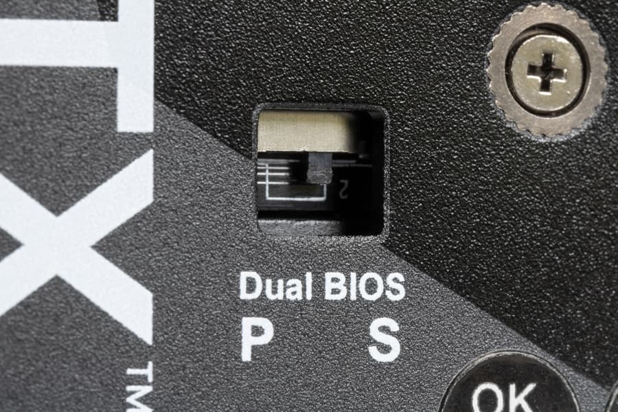 Карта имеет два режима работы, они заложены в двух вариантах BIOS, которые переключаются с помощью переключателя на переднем торце карты: P (performance / производительный, он же 1) и S (silent / тихий, он же 2). Разница между режимами заключается в настройке работы вентиляторов, а также в пределах энергопотребления: в случае BIOS S он составляет 360 Вт, а в случае BIOS P — 380 Вт.