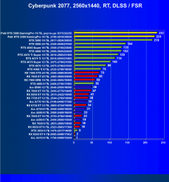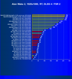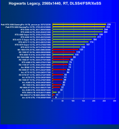 Результаты тестов со включенной аппаратной трассировкой лучей и/или DLSS/FSR/XeSS в разрешениях 1920×1080, 2560×1440 и 3840×2160