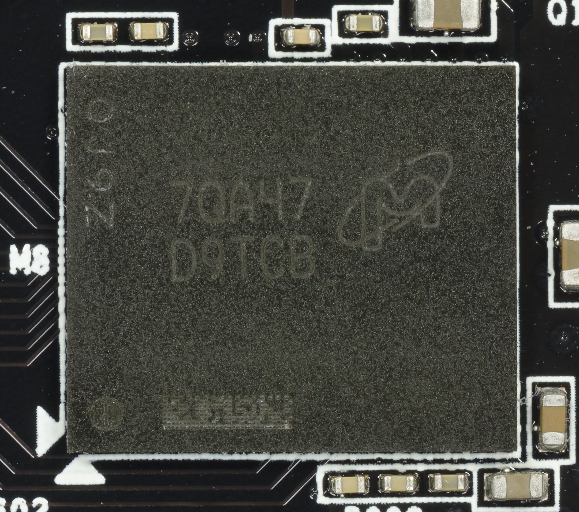 Карта имеет 8 ГБ памяти GDDR5 SDRAM, размещенной в 8 микросхемах по 8 Гбит на лицевой стороне PCB. Микросхемы памяти Micron (GDDR5) рассчитаны на номинальную частоту работы в 2000 (8000) МГц.