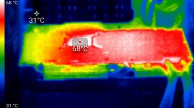 Максимальный нагрев — с обратной стороны печатной платы над GPU.