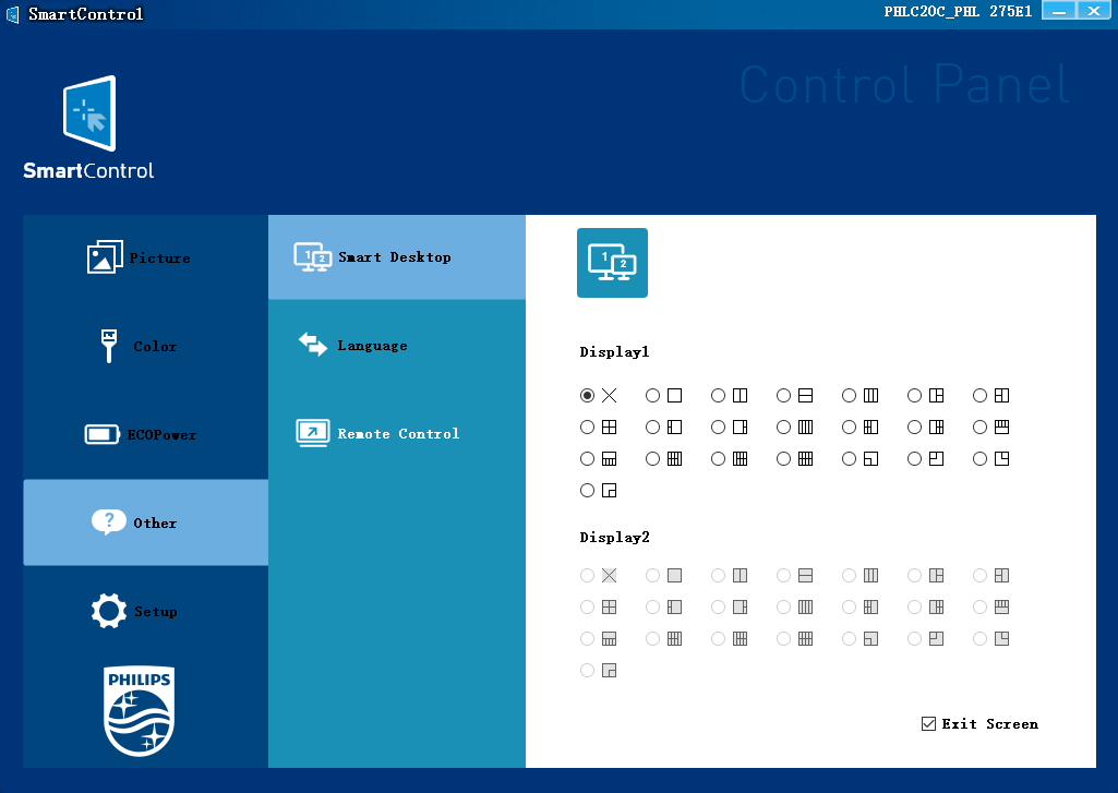 Напечатанной документации в комплекте поставки — самый минимум, так как полные руководства пользователя на нескольких языках (включая на русский) в виде PDF-файлов доступны на прилагаемом CD-ROM и на сайте компании. Также на сайте можно найти программу SmartControl. Она позволяет с компьютера изменять некоторые настройки монитора, есть возможность включить автоматический выбор профиля в зависимости от активного приложения. Кроме того, присутствует функция, упрощающая распределение окон на рабочем столе. Для данного разрешения это уже весьма актуально. Дополнительно можно поменять настройки энергосбережения.
