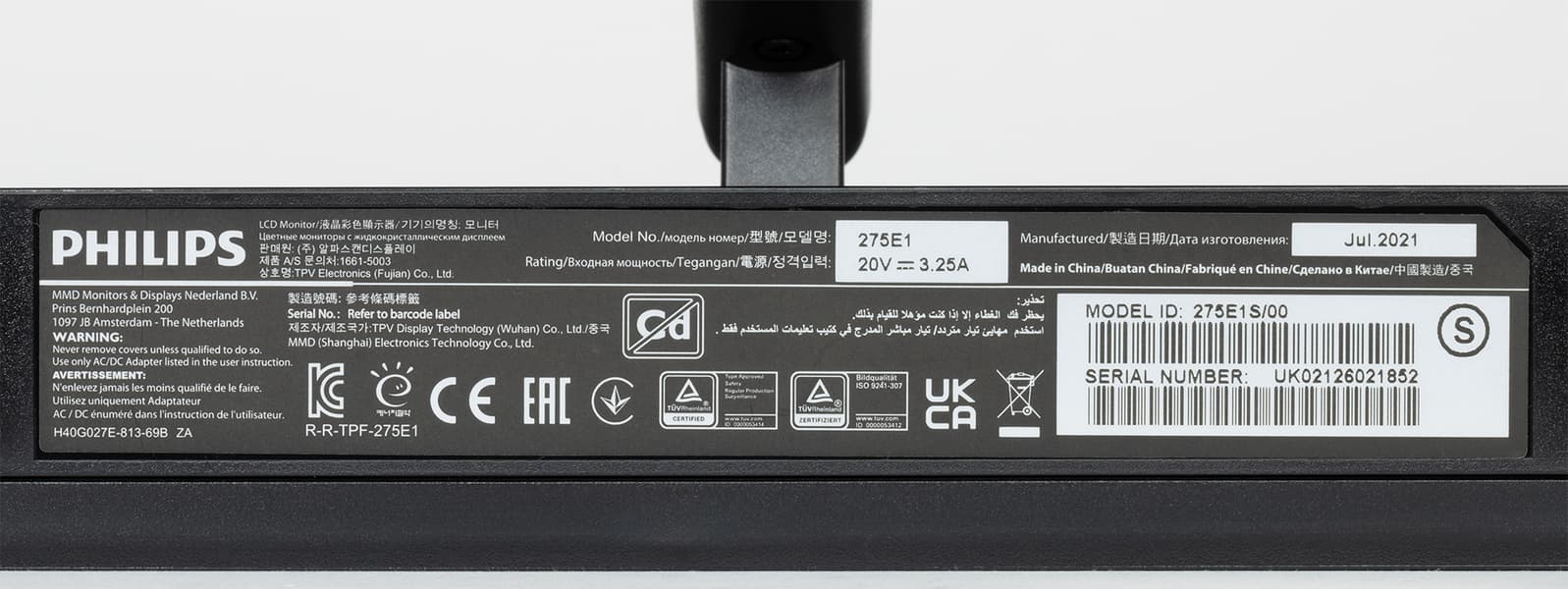 | Модель, ссылка на сайт производителя | Philips 275E1S/00 |