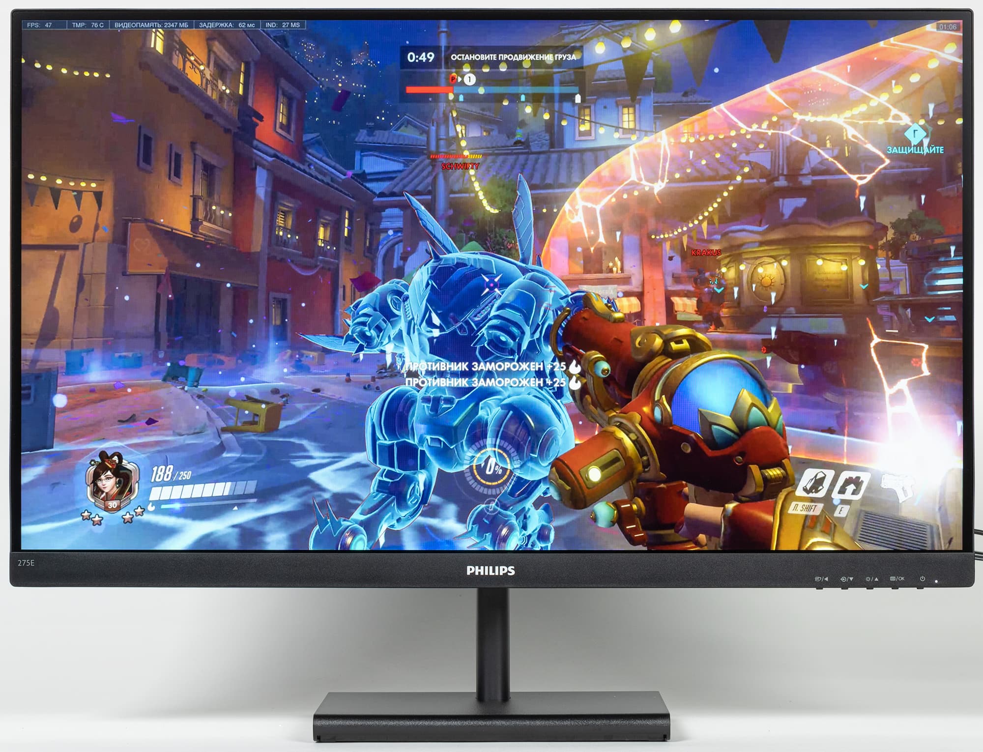Лучше остановиться на предпоследнем значении, так как на максимальном разгоне артефакты очень заметны. С нашей точки зрения, скорости матрицы при этом все равно достаточно даже для динамичных игр.