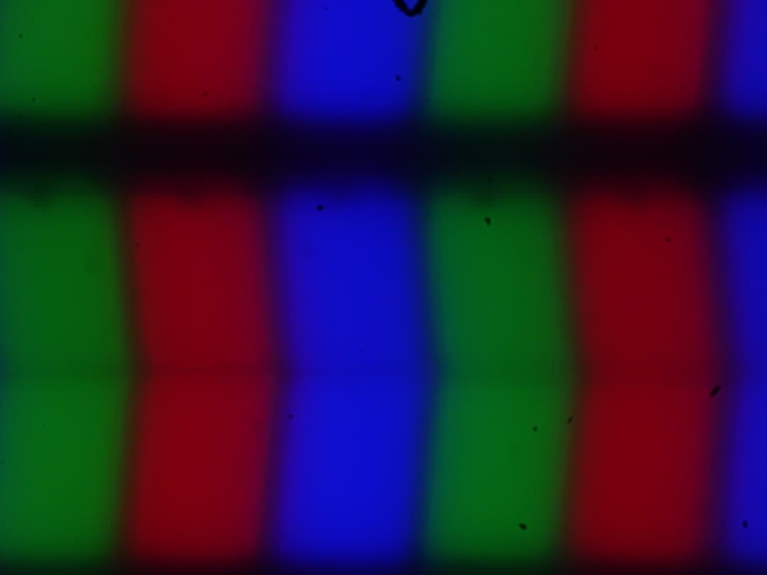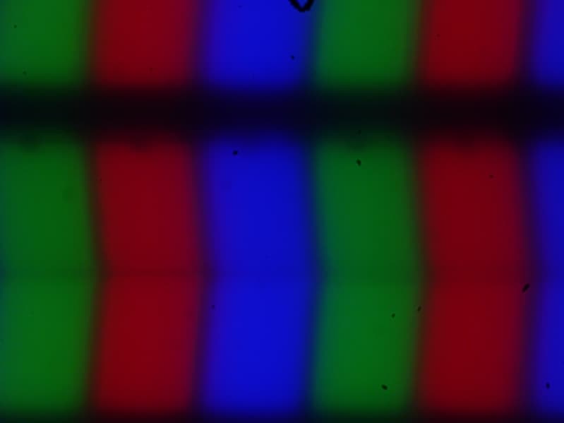 Изображение структуры пикселей из-за матовой поверхности размыто, но характерную для IPS структуру при желании распознать можно:
