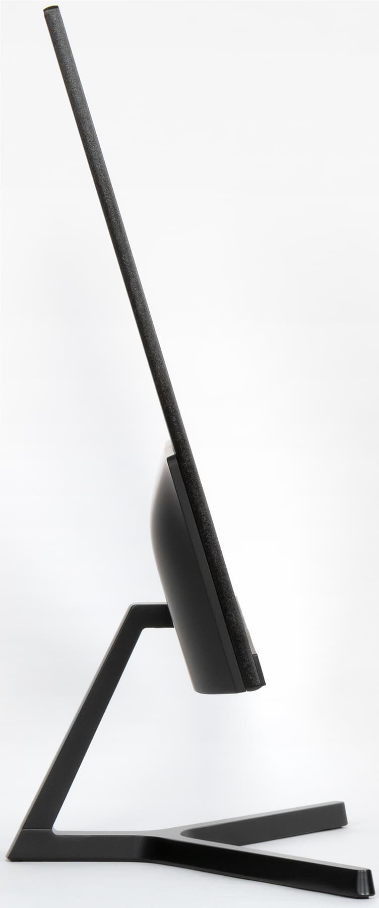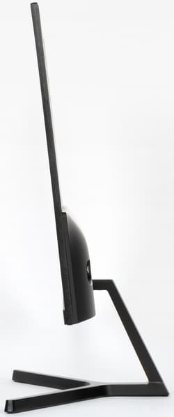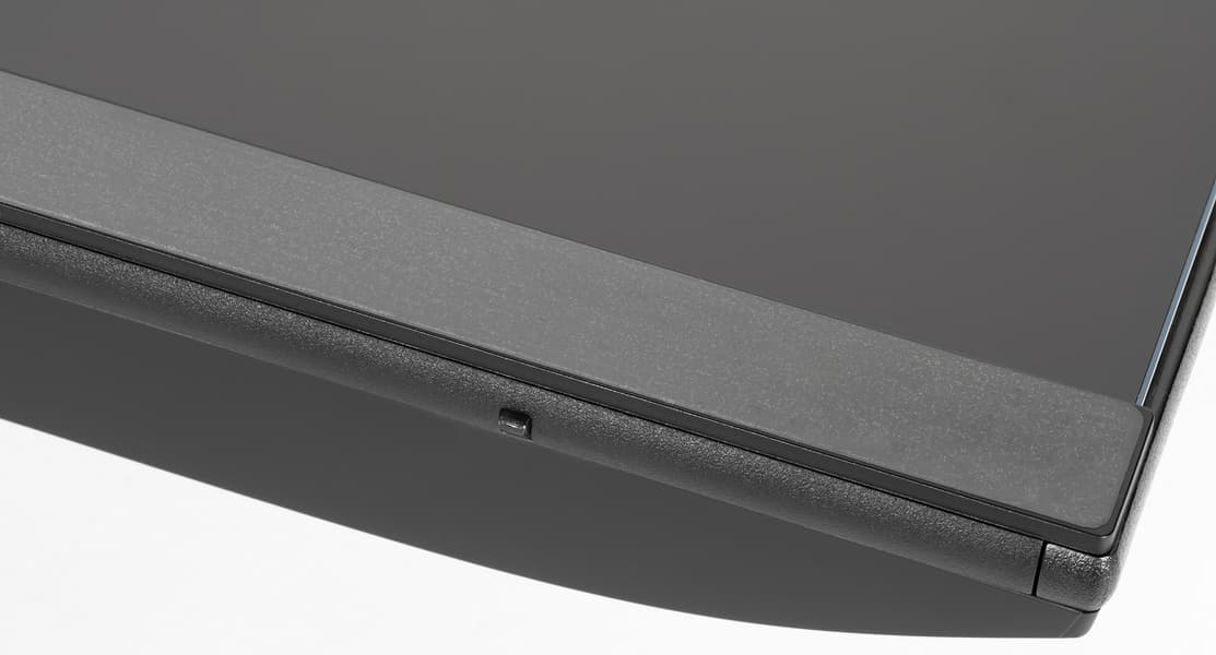 Внешняя поверхность матрицы черная, полуматовая, зеркальность выражена. Экран выглядит как монолитная поверхность, ограниченная снизу пластиковой планкой, а сверху и с боков — узкой пластиковой окантовкой. Выведя изображение на экран, можно увидеть, что на самом деле между внешними границами экрана и собственно областью отображения есть неширокие поля — по 6 мм до внешних краев сверху и по бокам и 2,5 мм до планки снизу. Окантовка, планка и выступающий назад кожух сзади, заходящий на нижний торец, изготовлены из черного пластика с матовой поверхностью, а задняя панель в верхней тонкой части — стальная с черным матовым стойким покрытием. На нижнем торце ближе к правому краю находится неприметный светорассеиватель индикатора состояния.