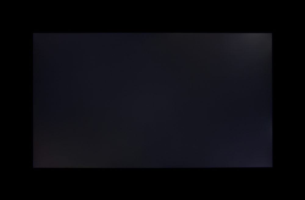 Если отступить от краев, то равномерность всех трех параметров средняя. Контрастность для данного типа матриц типичная, но бывает и выше. Визуально видно, что черное поле в основном ближе к краю слегка засвечено. Фотография ниже это демонстрирует: