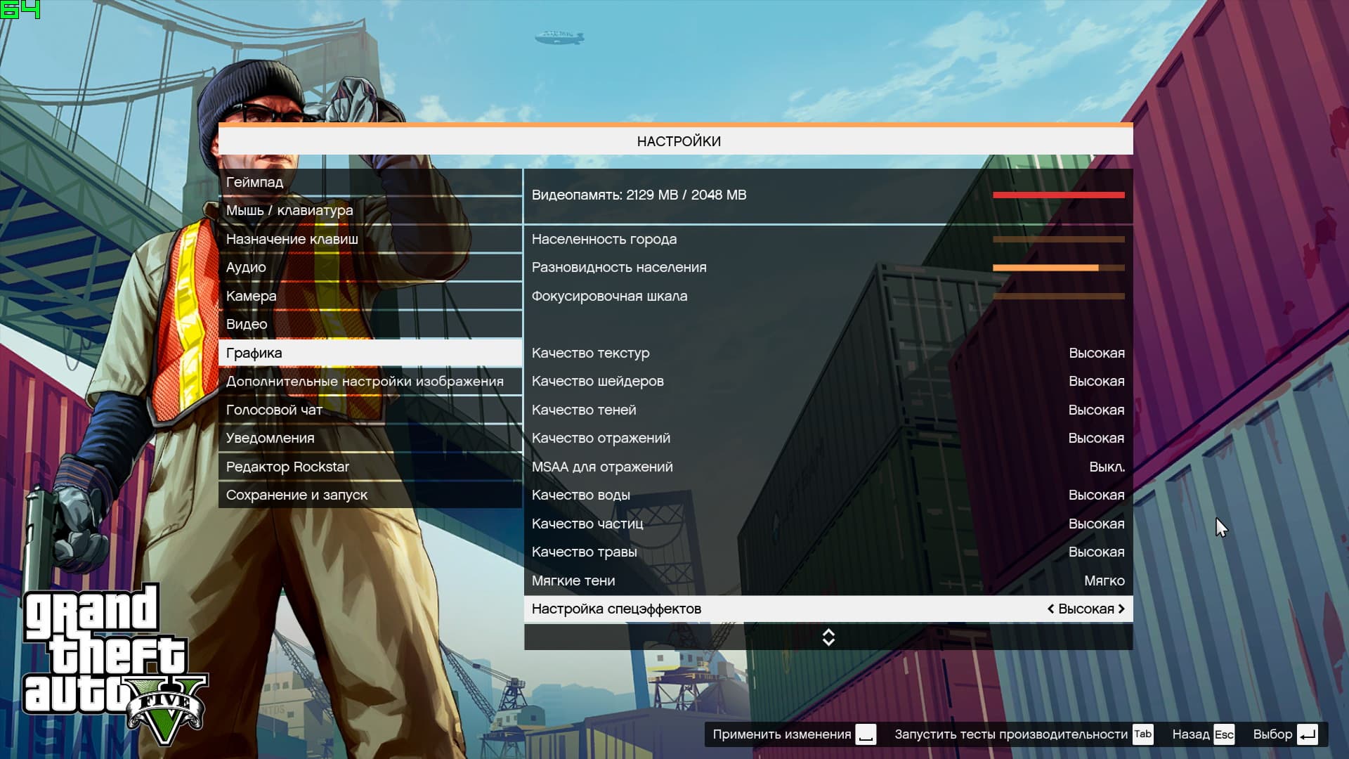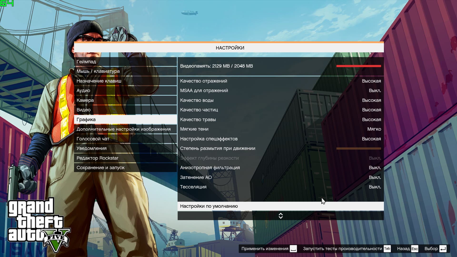 Выбранные нами конфигурации (кроме интегрированной графики Intel) находятся значительно выше минимальных требований, заявленных разработчиками игры Grand Theft Auto V, поэтому в данном случае мы можем рассчитывать на получение приемлемой производительности на средних и даже на высоких настройках.
