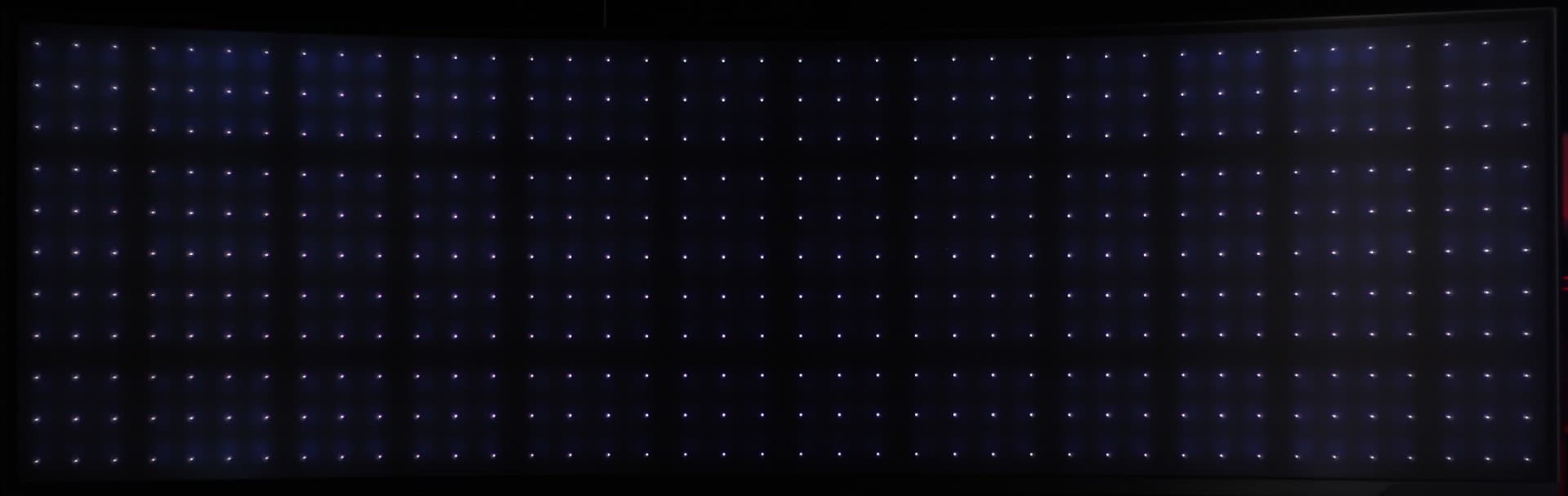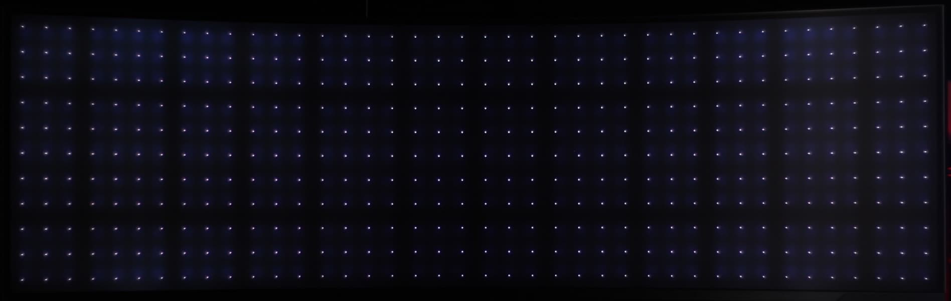 Данный монитор оснащен прямой многозонной светодиодной подсветкой: сзади непосредственно за ЖК-матрицей находится матрица из светодиодов синего свечения с дополнительным слоем в виде пленки с квантовыми точками, дополняющими спектр до белого света. Отдельные блоки светодиодов (а возможно и каждый из светодиодов — точной информации у нас нет) управляются независимо от остальных. По данным производителя всего 2392 независимо управляемых зон. Это позволяет получить хорошую равномерность яркости подсветки по площади экрана, а также локально подсвечивать яркие участки изображения и затемнять темные, улучшая тем самым контраст изображения. Впрочем, локальное и глобальное затемнение можно отключить (точнее не включать), что позволяет определять характеристики ЖК-матрицы.