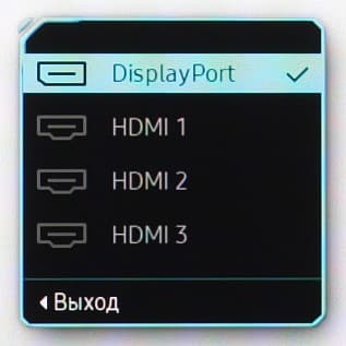 Представление об оснащенности интерфейсами дает таблица с характеристиками в начале статьи. Выбор видеовхода осуществляется в меню быстрого доступа. Есть отключаемая функция автоматического поиска видеосигнала на входах. Входы DisplayPort и HDMI способны принимать цифровые аудиосигналы (только PCM стерео), которые выводятся после преобразования в аналоговый вид через гнездо миниджек 3,5 мм. К этому гнезду можно подключить внешнюю активную акустическую систему или наушники. Мощности выхода на наушники хватило, чтобы в 32-омных наушниках с чувствительностью 92 дБ громкость была достаточной, и даже с большим запасом. Качество звука в наушниках хорошее — воспроизводится широкий диапазон частот, звук не резкий, искажений в явном виде нет, в паузах шума не слышно.