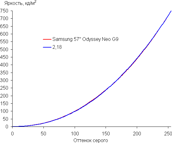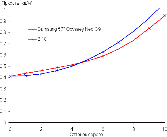 Аппроксимация полученной гамма-кривой дала показатель 2,18, что лишь чуть-чуть ниже стандартного значения 2,2. При этом реальная гамма-кривая мало отклоняется от аппроксимирующей степенной функции: