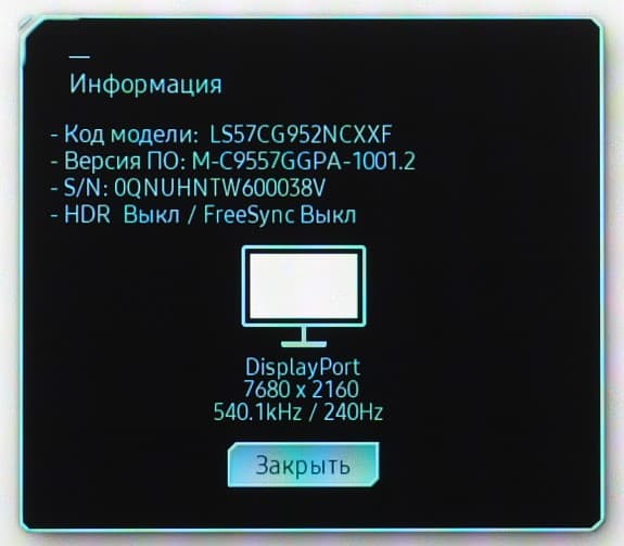 При подключении к компьютеру по DisplayPort (версии 2.1) и по HDMI (версии 2.1) поддерживается разрешение до 7680×2160 при 240 Гц (120 Гц в случае входа HDMI1) кадровой частоты в режиме 10 бит (12 бит в случае HDMI) на цвет на вход и без потери цветовой четкости. Данные режимы были протестированы с использованием видеокарты Gigabyte Radeon RX 7700 XT Gaming OC 12G.