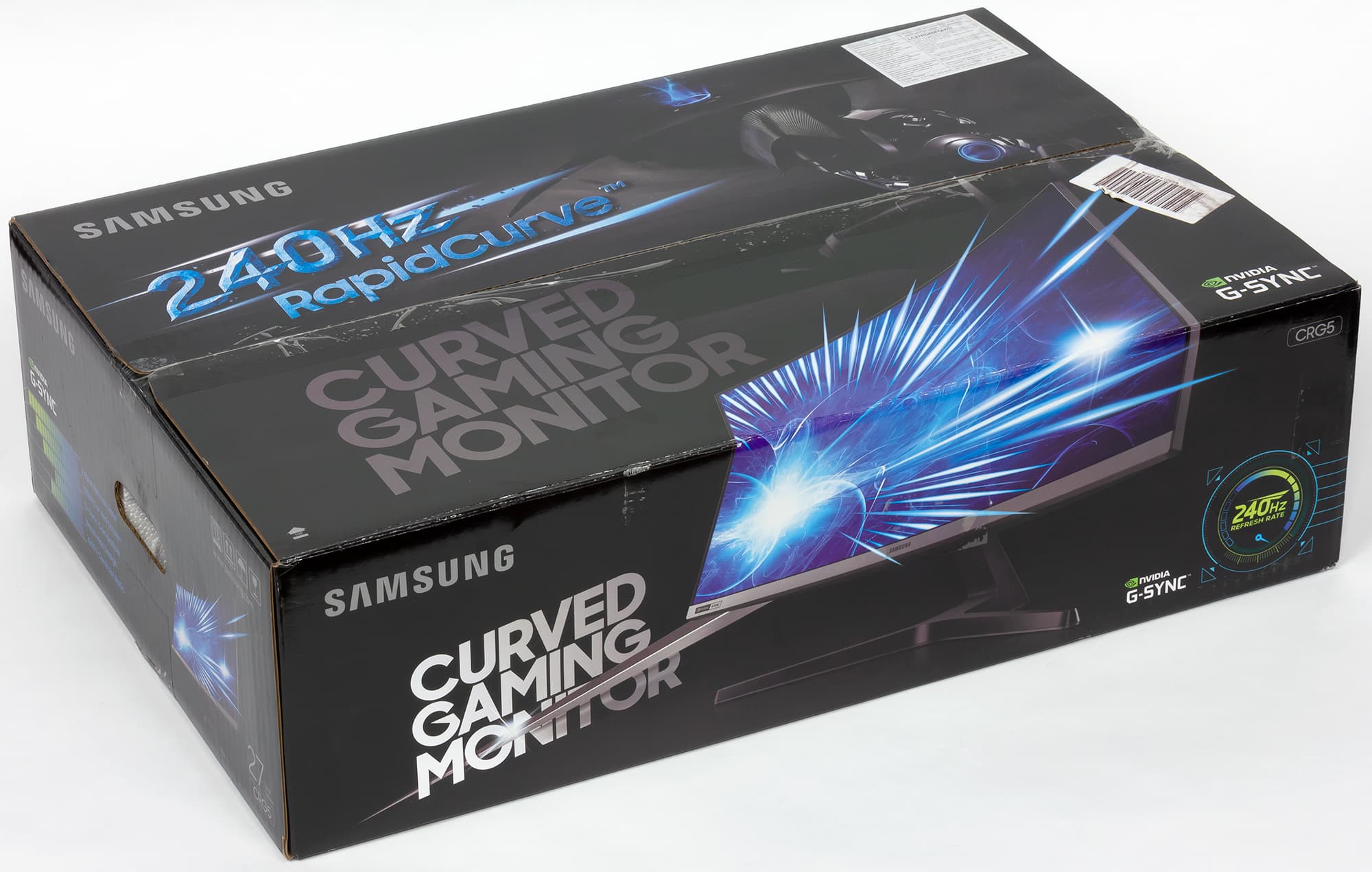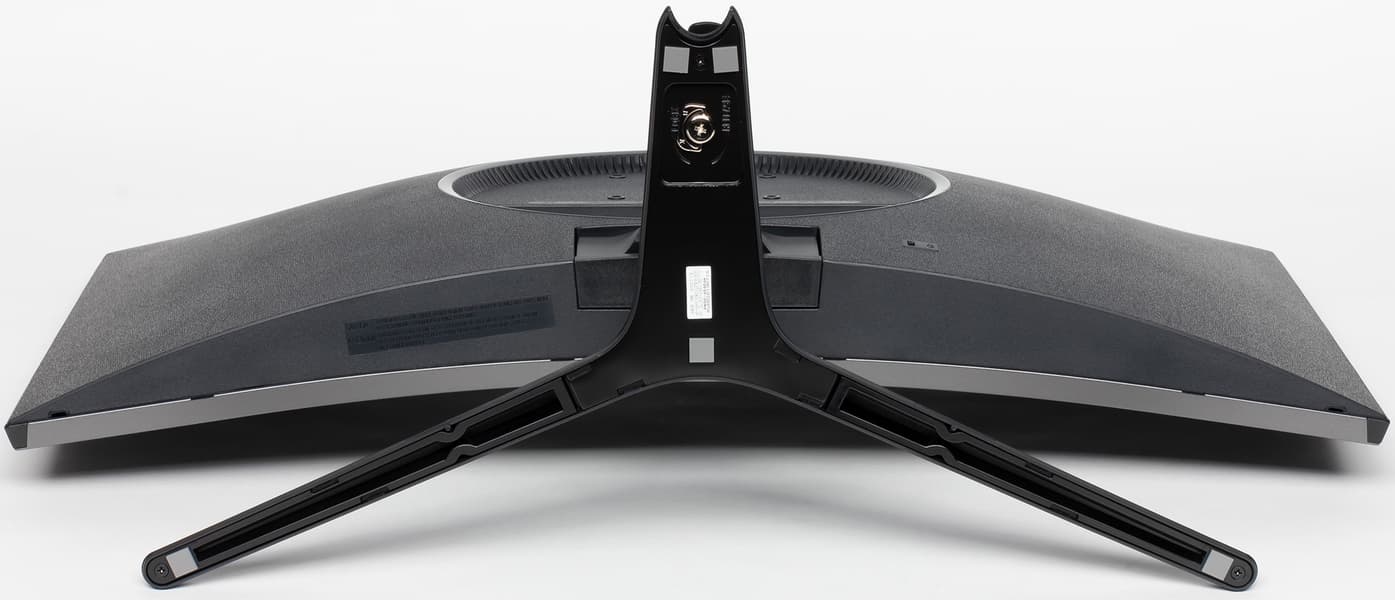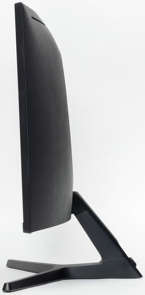 Панели корпуса блока экрана, а также кожух основания подставки и стойка подставки изготовлены из черного пластика в основном с матовой поверхностью. Большая часть площади задней панели имеет мелкий рельефный узор. Внешняя поверхность матрицы черная, полуматовая. Экран выглядит как монолитная изогнутая поверхность, ограниченная снизу планкой из пластика с темно-серым серебристым покрытием, а сверху и с боков — узкой пластиковой окантовкой. Выведя изображение на экран, можно увидеть, что на самом деле между внешними границами экрана и собственно областью отображения есть неширокие поля. Плоскость экрана изогнута по цилиндру так, что правый и левый край немного выдвинуты вперед. Заявленный радиус изгиба равен 1,5 м. Равномерность изгиба более-менее равномерная, за исключением того, что на расстоянии порядка 10 см от правого и левого края экран уже практически плоский.