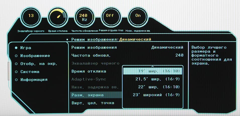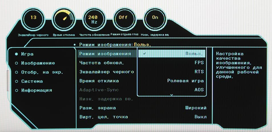 Также можно ограничить максимальную частоту обновления, изменить разгон матрицы, включить/выключить режим Adaptive-Sync и режим с низкой задержкой вывода.