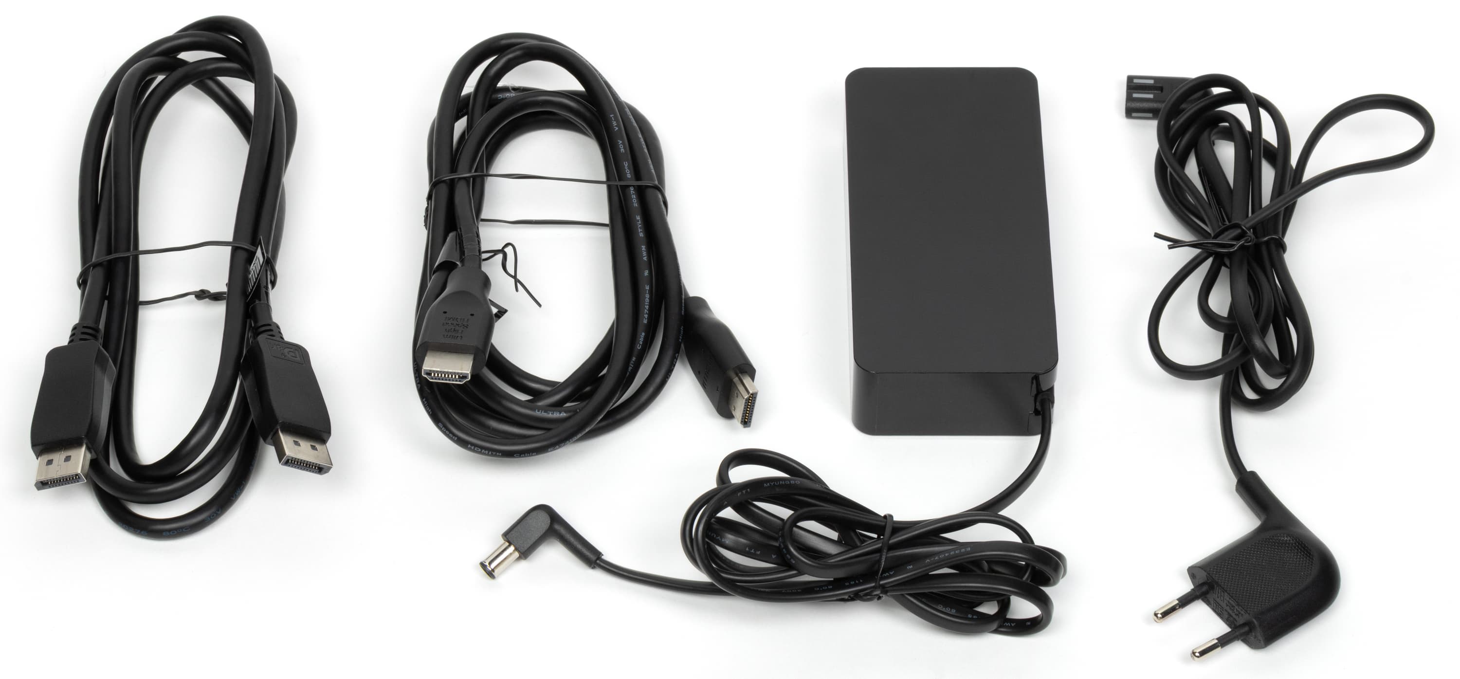 К монитору прилагается неплохой комплект кабелей (но не очень длинных) черного цвета. Кабель USB нам, к сожалению, не достался: