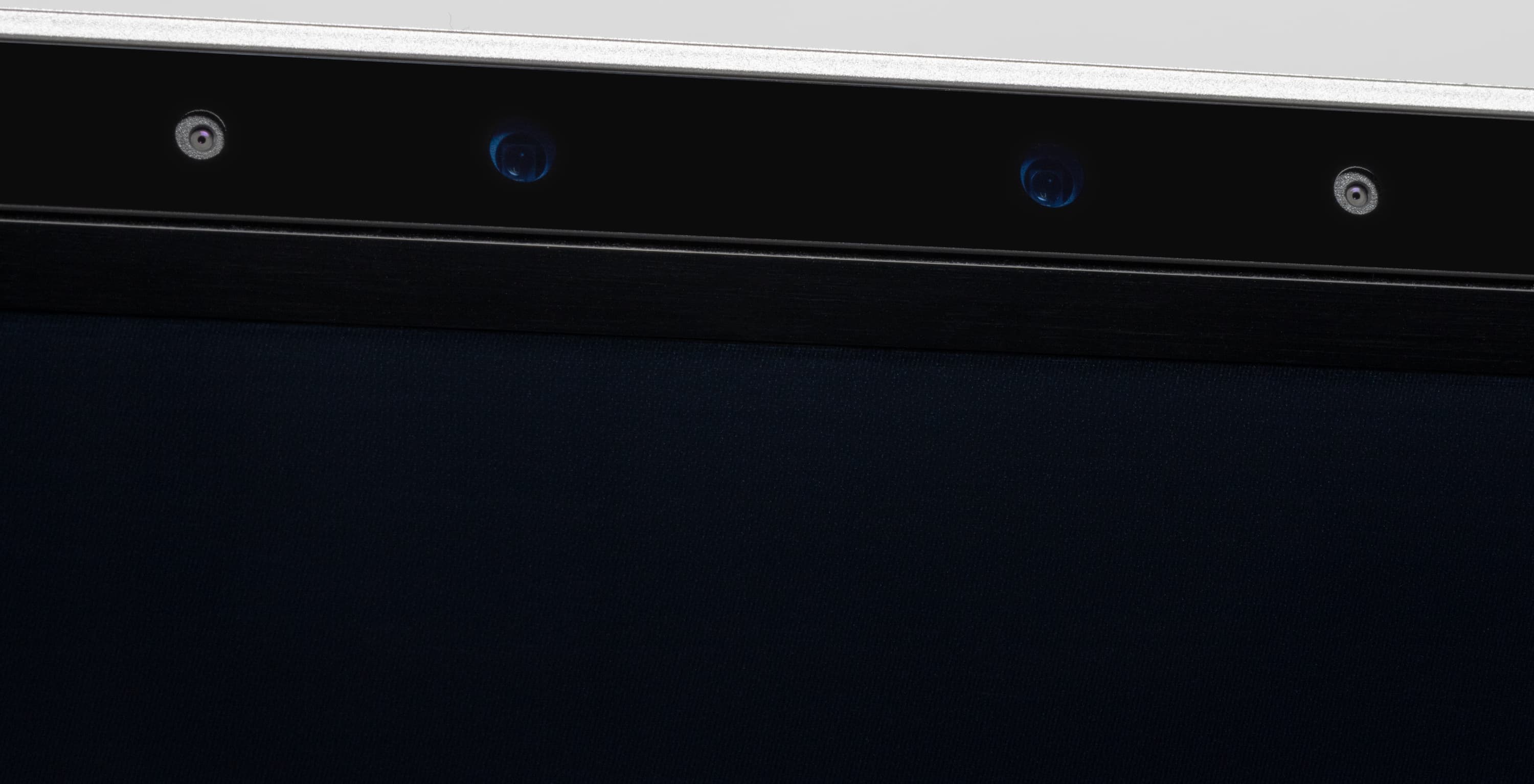 Часть матрицы снизу прикрыта пластиковой пленкой, а в центральной части вставки сверху расположены сдвоенная стереоскопическая камера, ИК-диоды подсветки и индикатор работы камеры (неярко светится красным при работе камеры).
