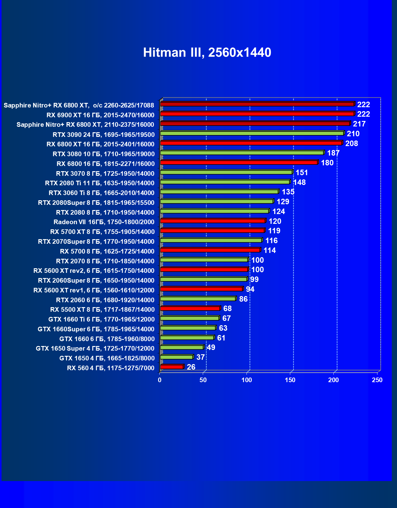 | 01 | RX 6900 XT 16 ГБ, 2015—2470/16000 | 229 | 2864 | 125 000 |