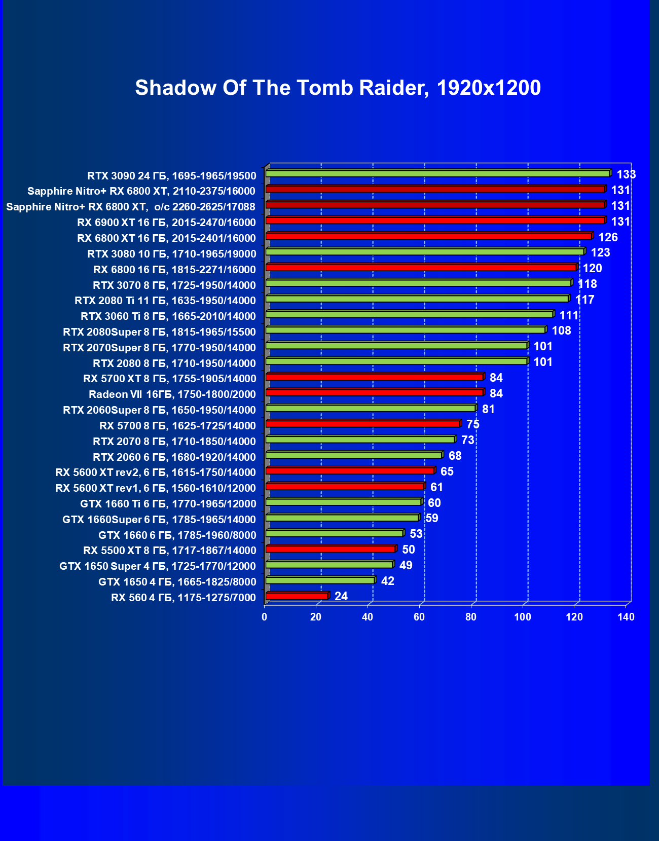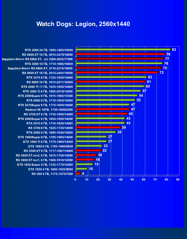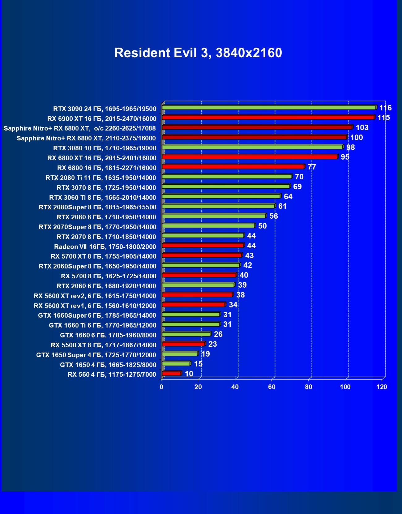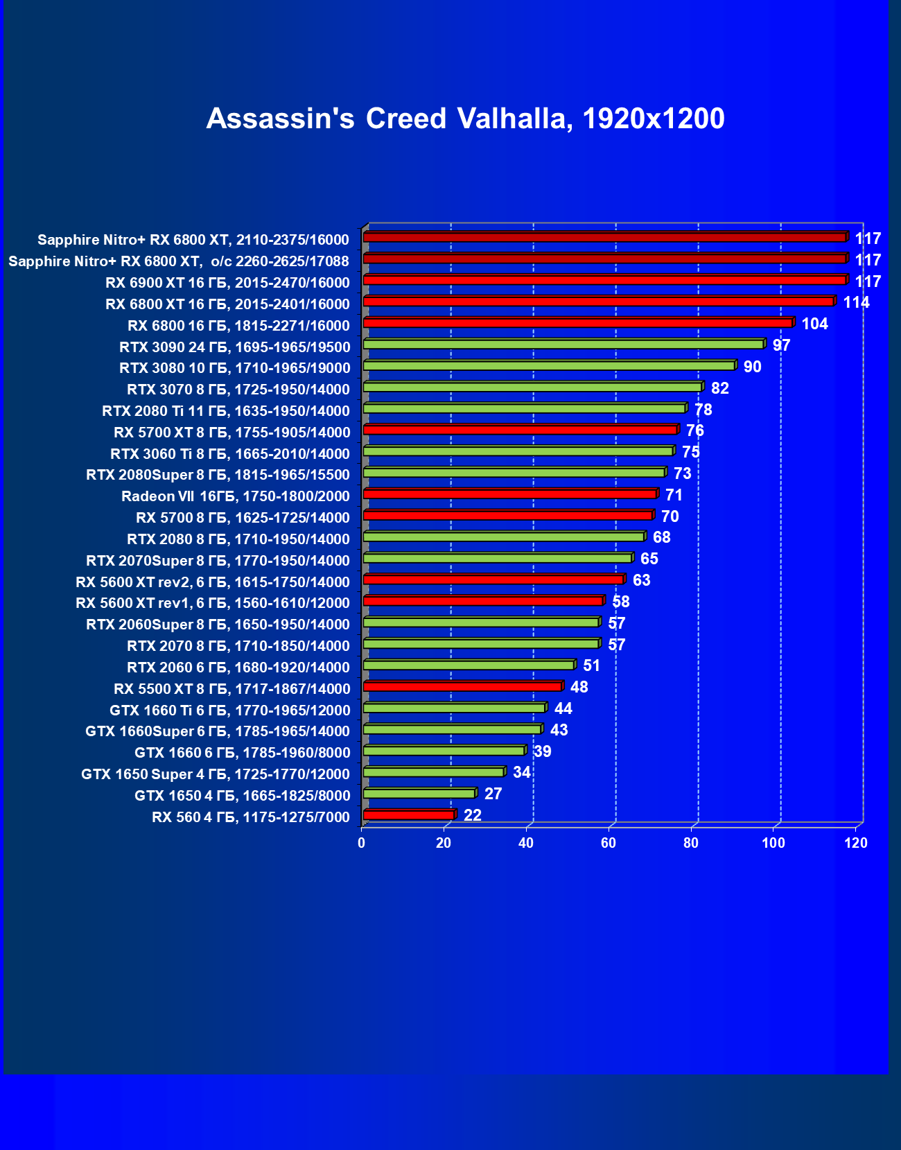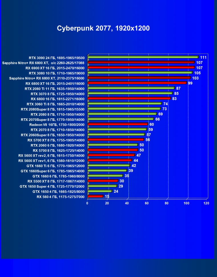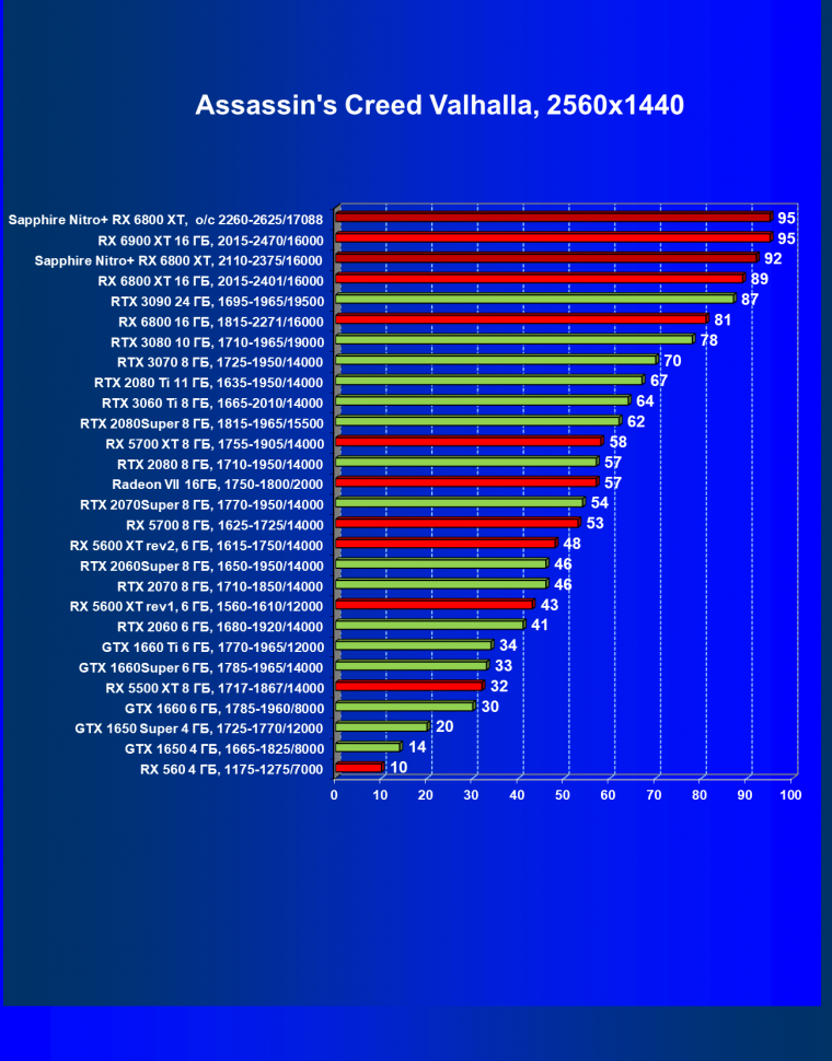 | 10 | RX 6800 XT 16 ГБ, 2015—2422/16000 | 13 | 154 | 119 500 |