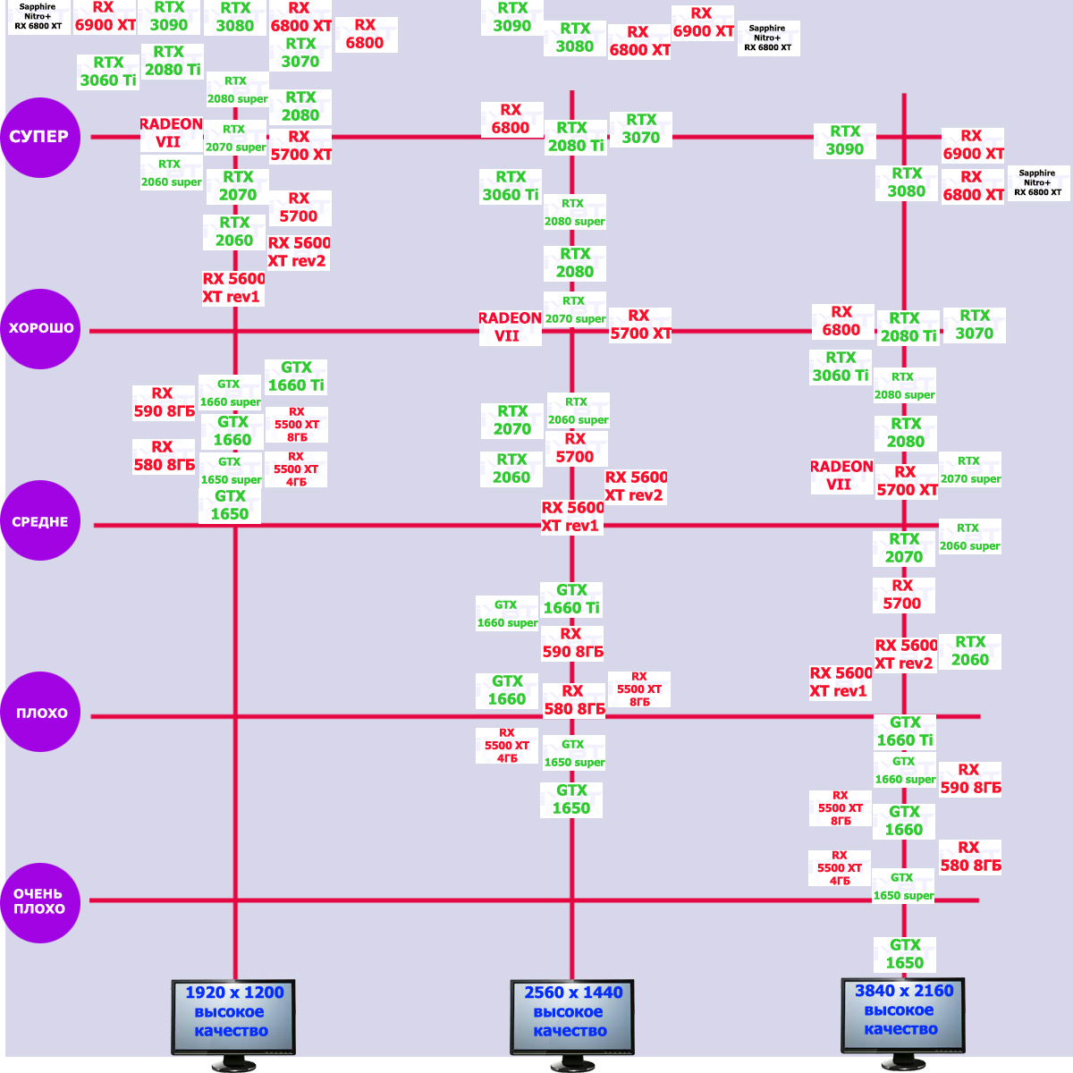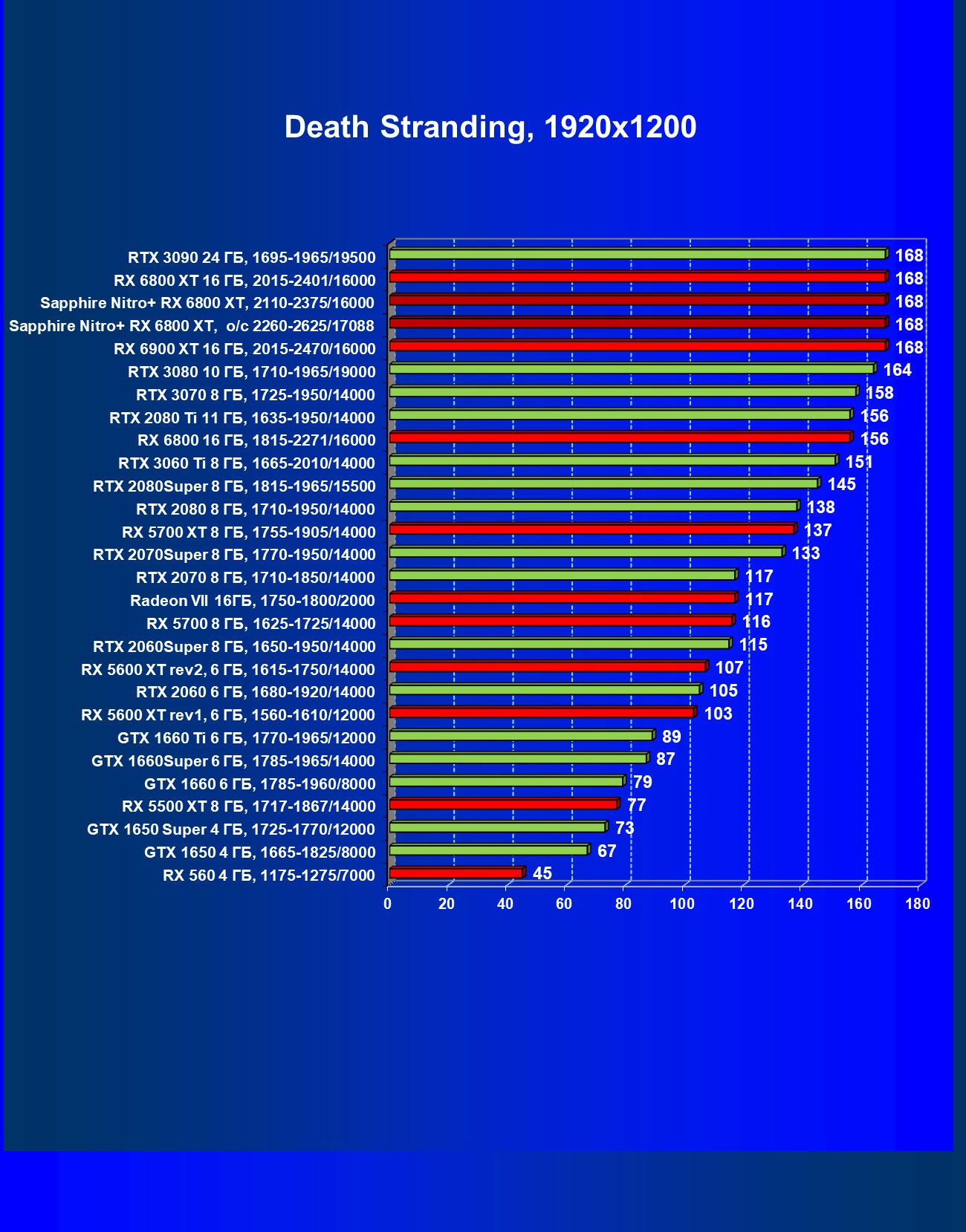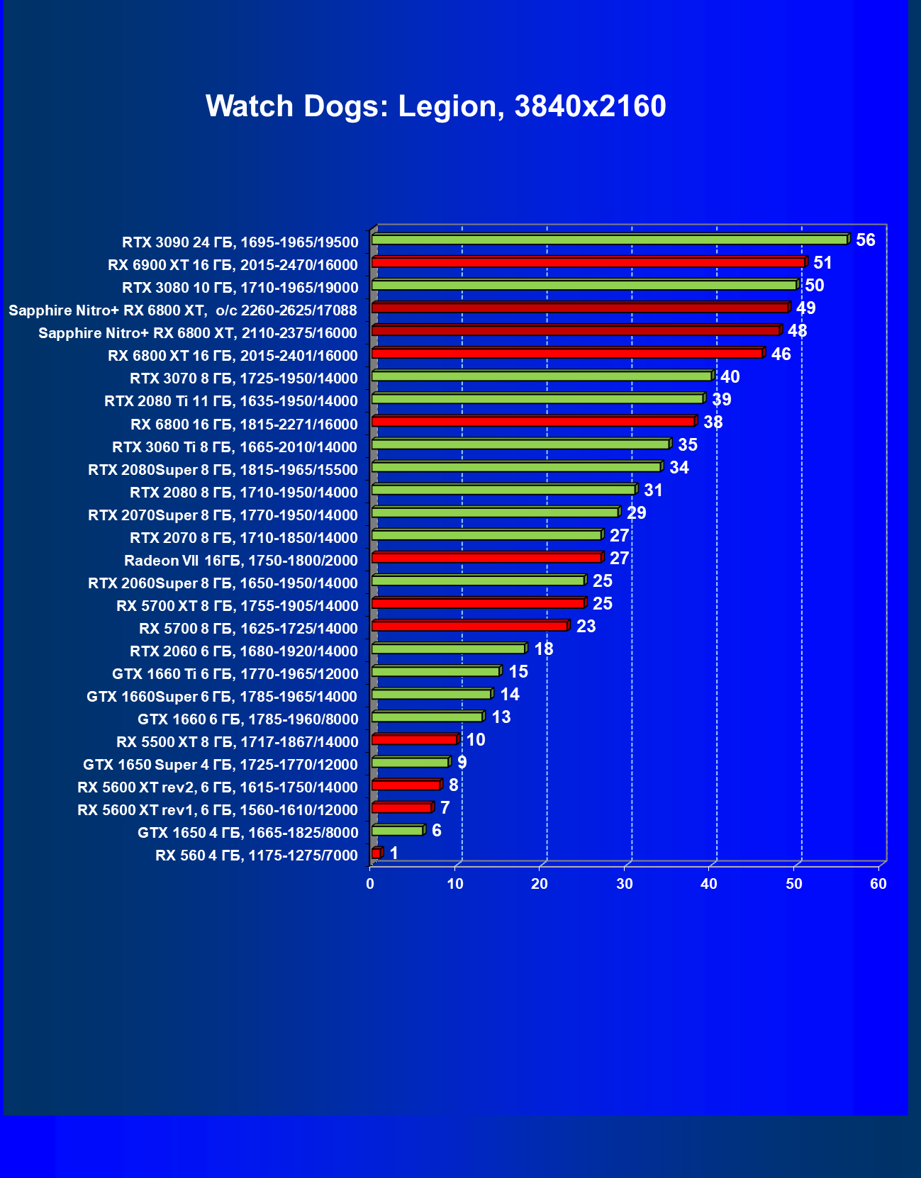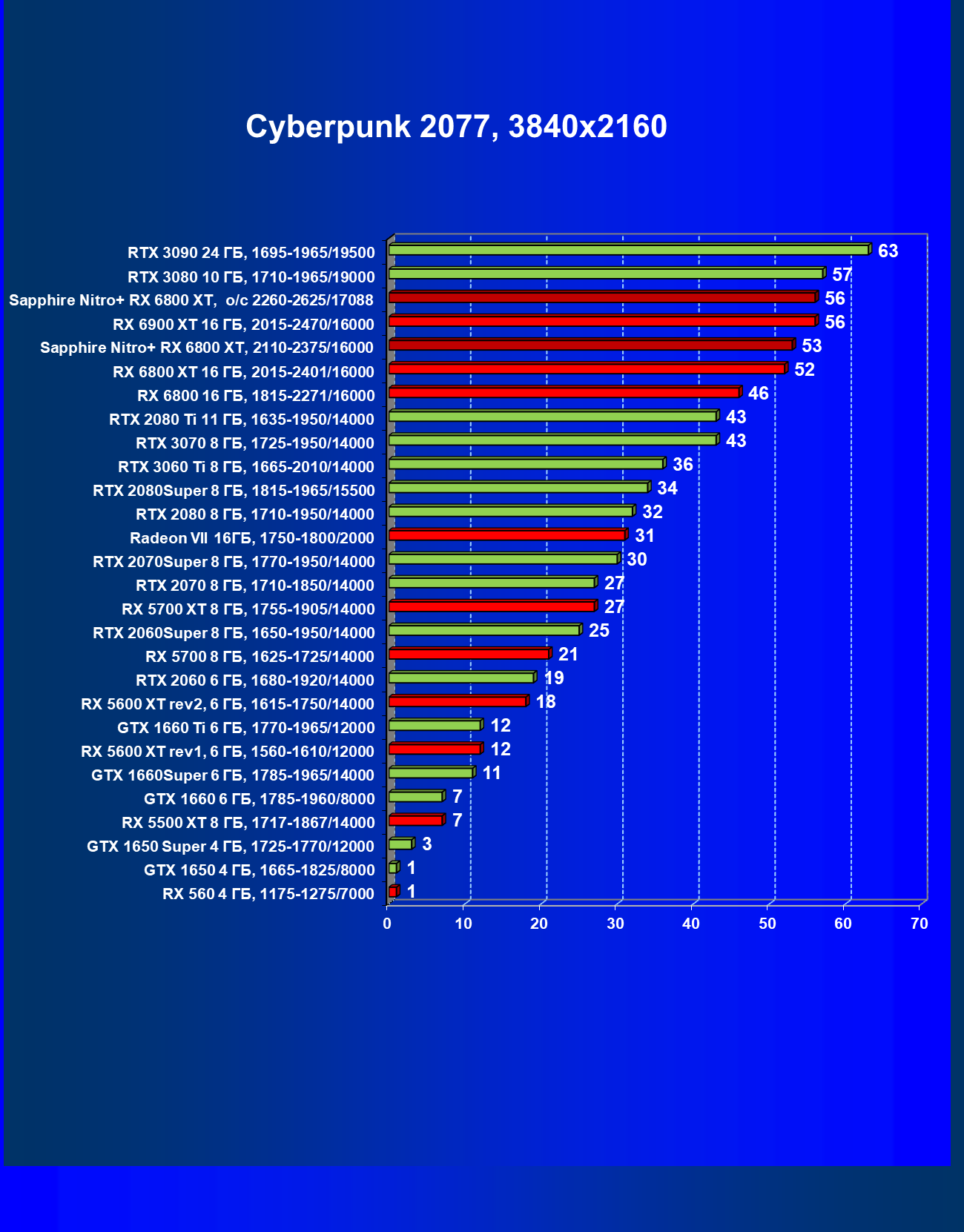 | 10 | RX 6800 XT 16 ГБ, 2015—2422/16000 | 13 | 154 | 119 500 |