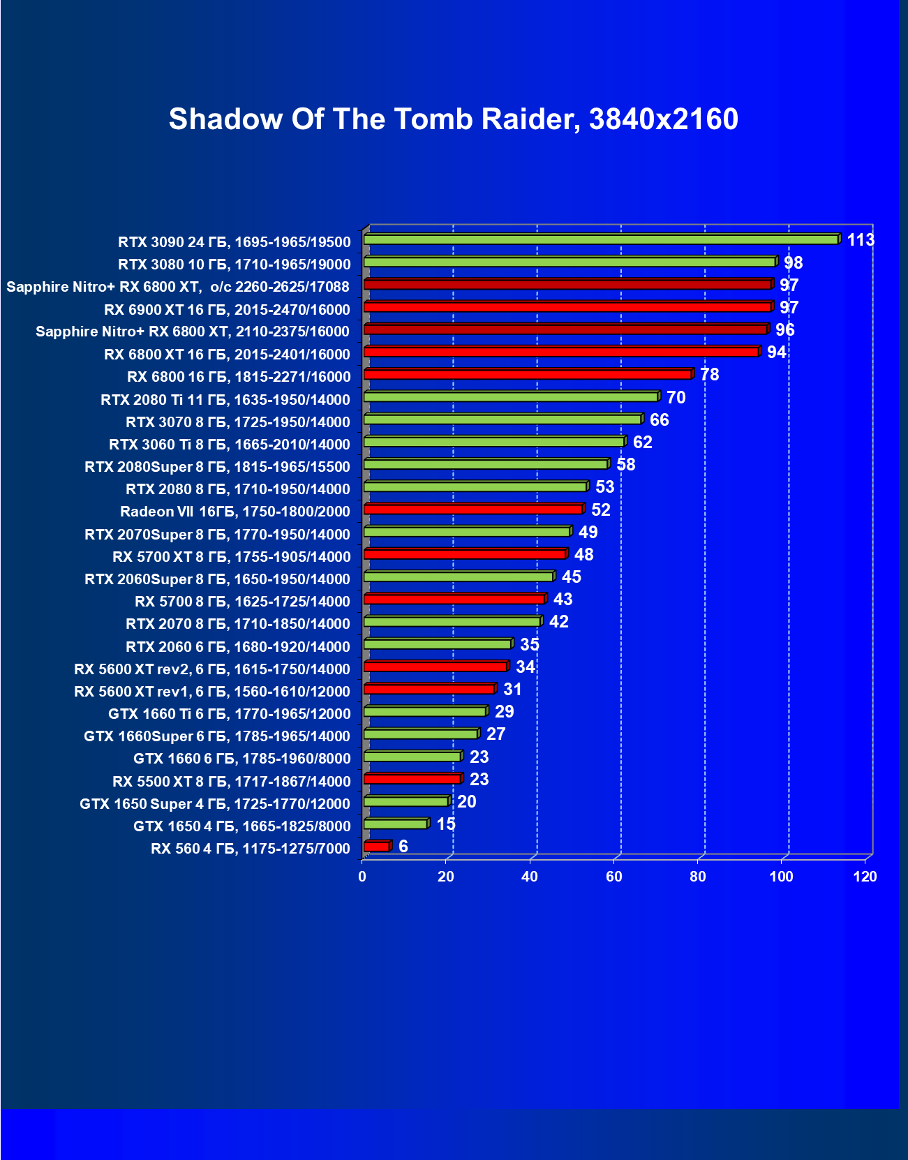 | 05 | Sapphire Nitro+ RX 6800 XT, разгон до 2260—2625/17088 | 14 | 174 | 122 000 |