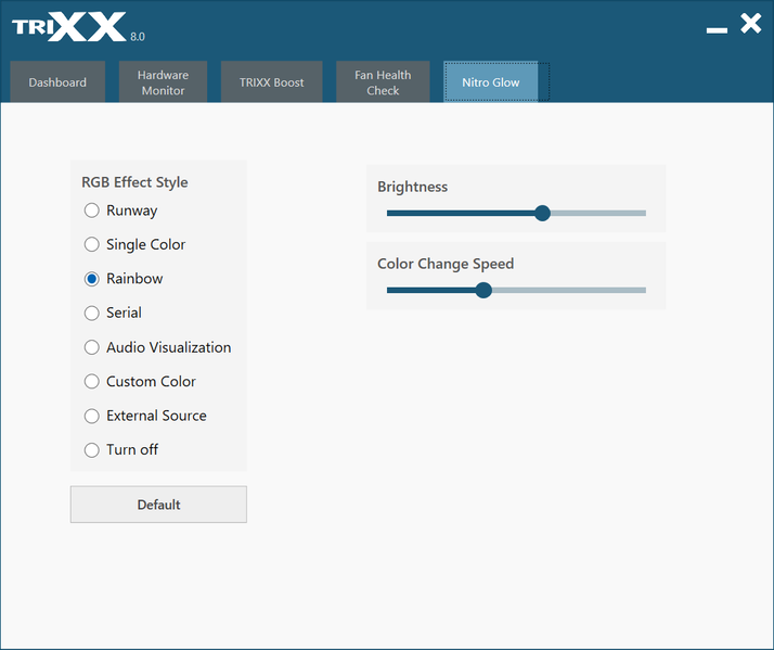 Для управления подсветкой используется все та же утилита Sapphire Trixx. Система подсветки называется Nitro Glow.