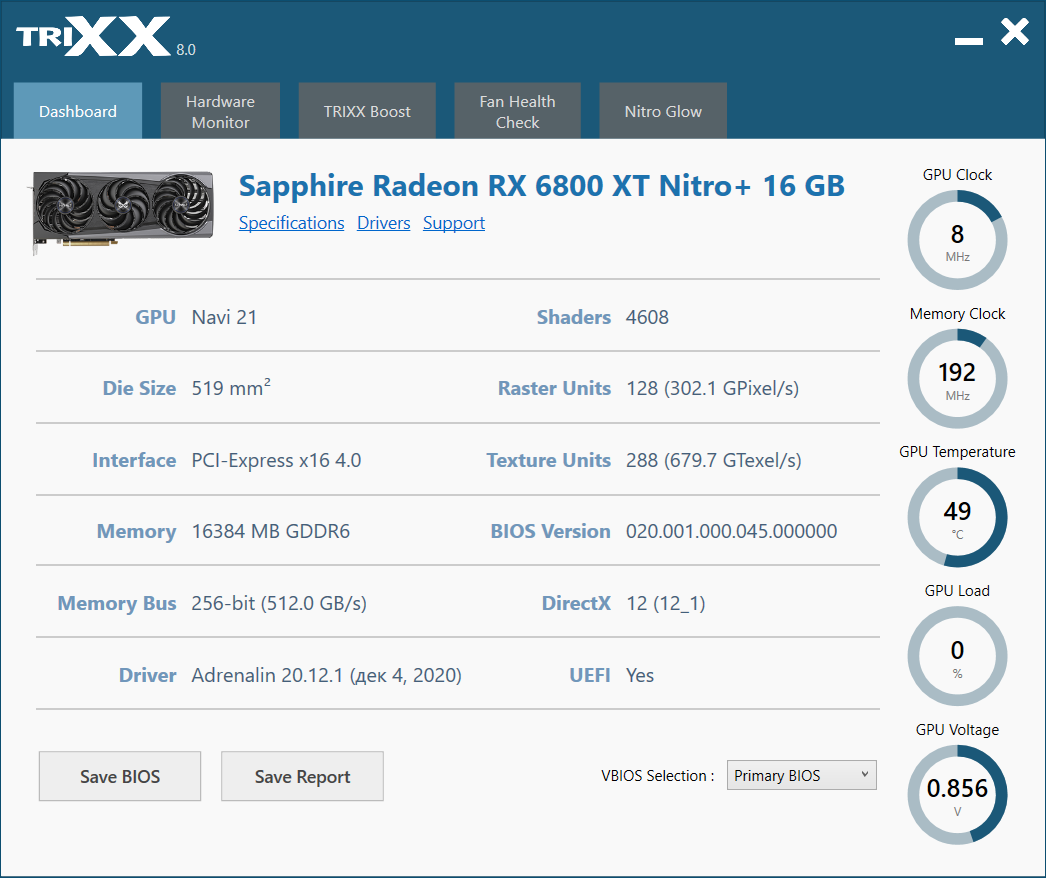 | Sapphire Nitro+ Radeon RX 6800 XT 16 ГБ 256-битной GDDR6 | ||