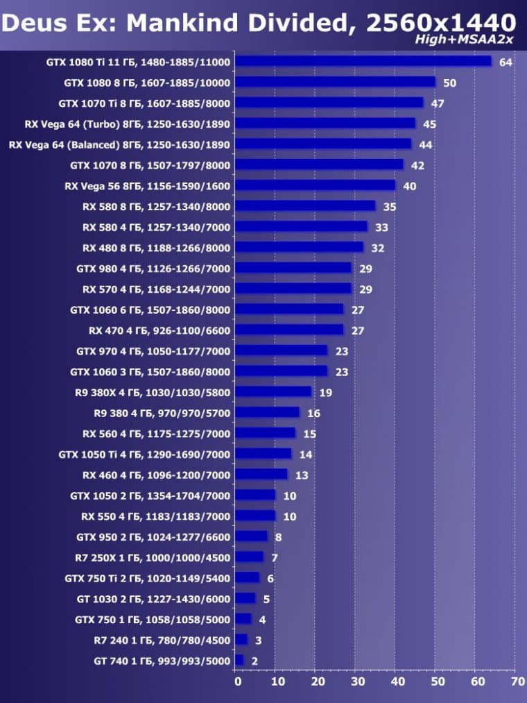 Собственно, мы видим то, что и так хорошо известно: ускоритель RX Vega64 расположился между топовыми продуктами конкурента Nvidia.