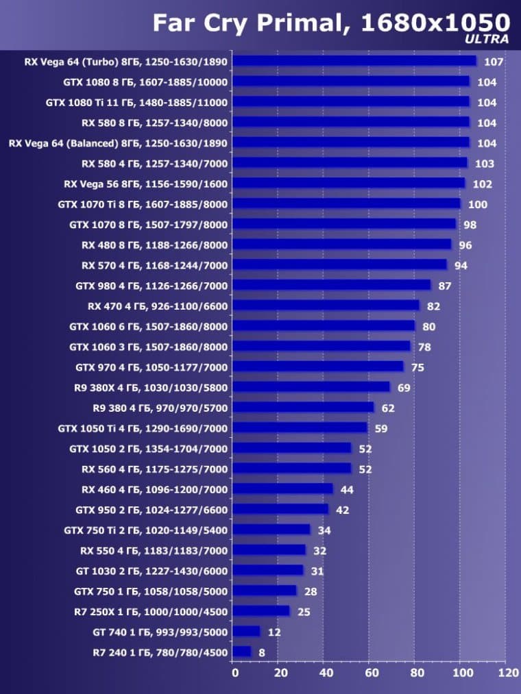 | 27 | RX Vega 64 (Balanced) 8 ГБ, 1250—1630/1890 | 289 | 2430 | 84 000 |